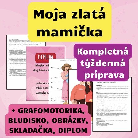 - Demonštračné obrázky: Súbor obrázkov mamičky a rodiny na diskusiu a rozvoj komunikačných kompetencií.