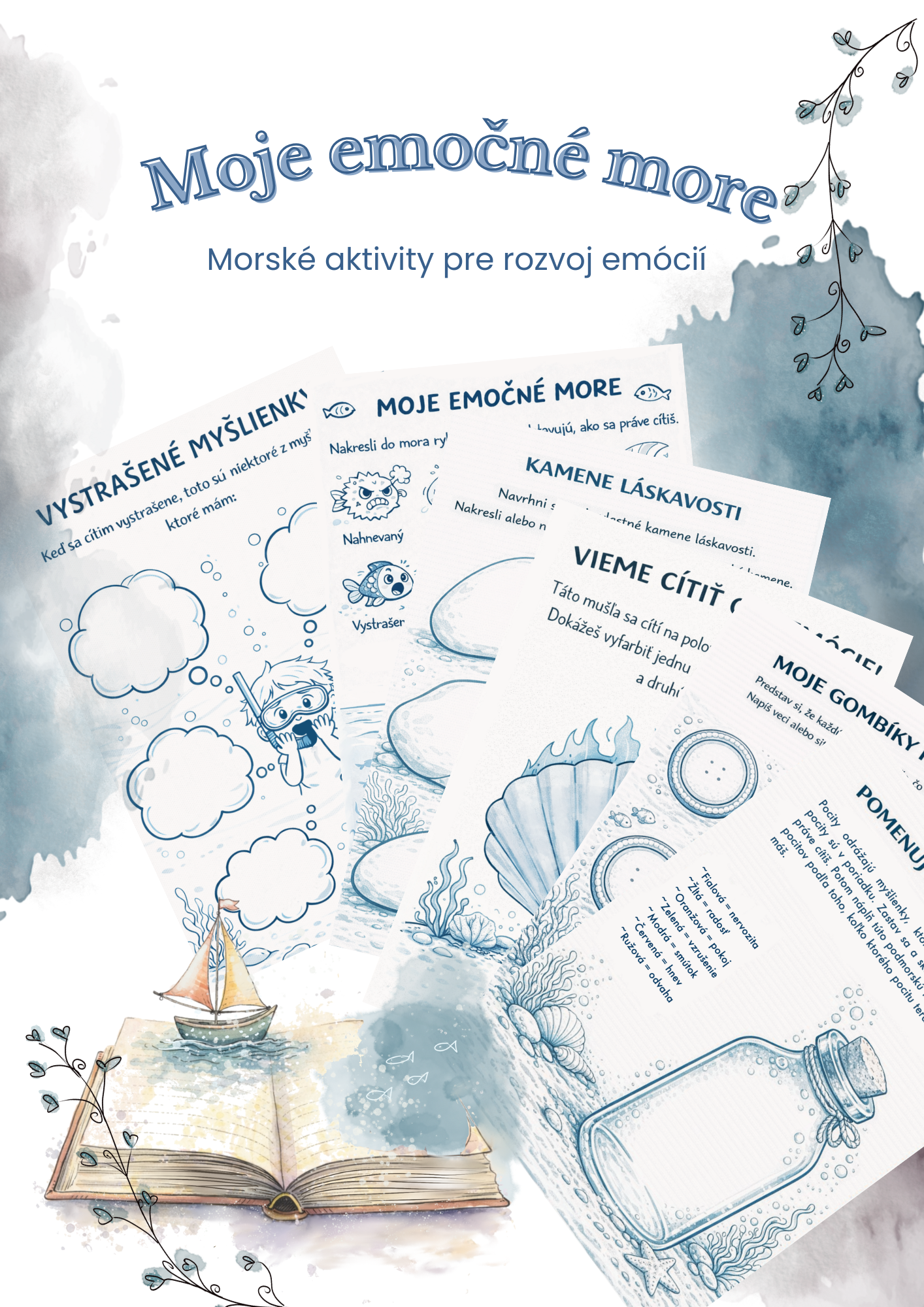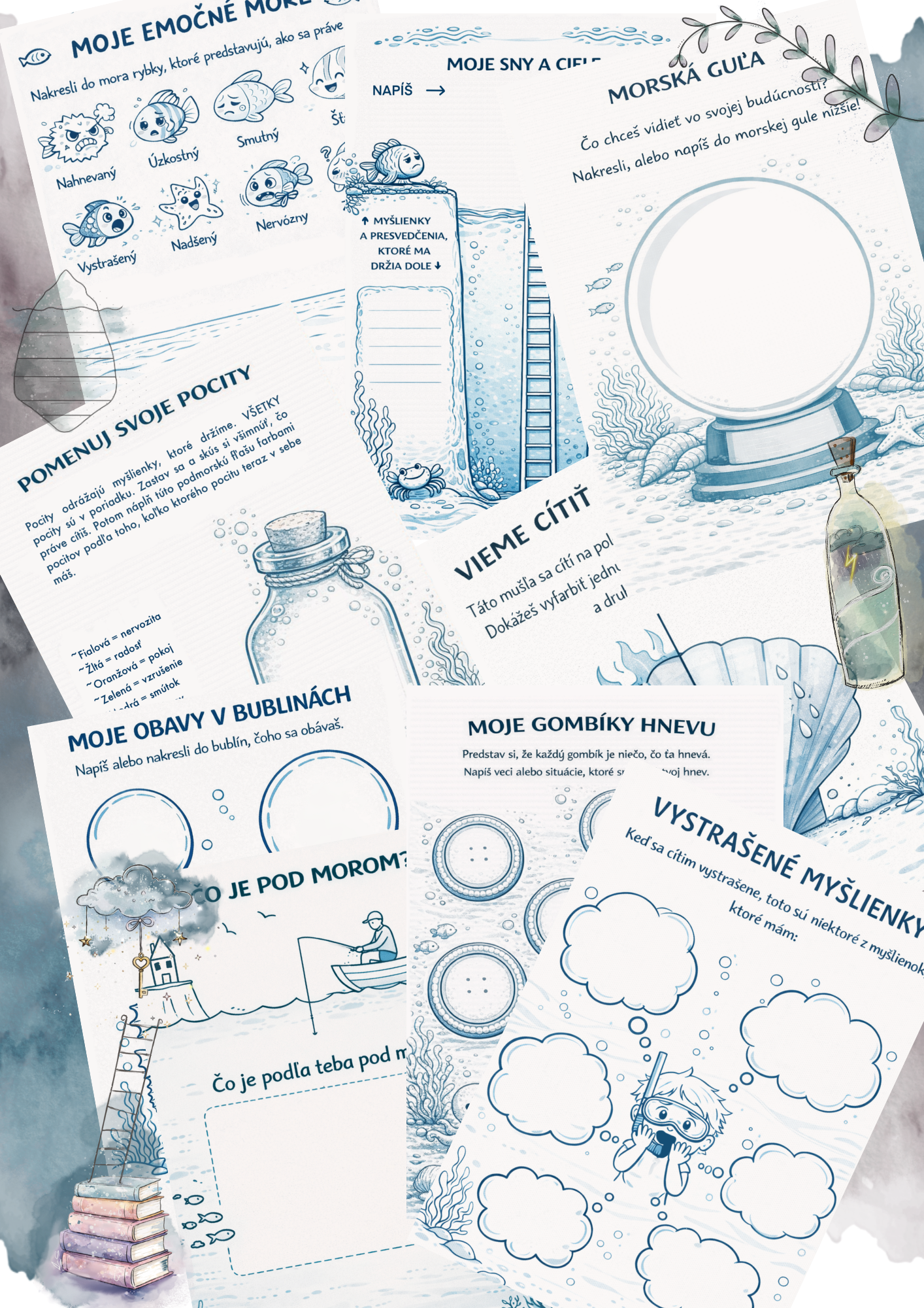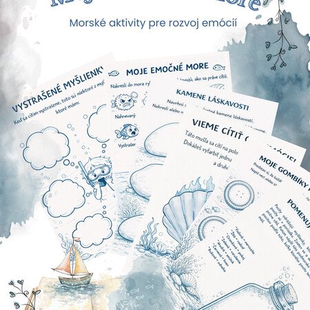 Moje emočné more je súbor podmorských pracovných listov, ktoré pomáhajú deťom objavovať, pomenovať a bezpečne vyjadriť svoje emócie.