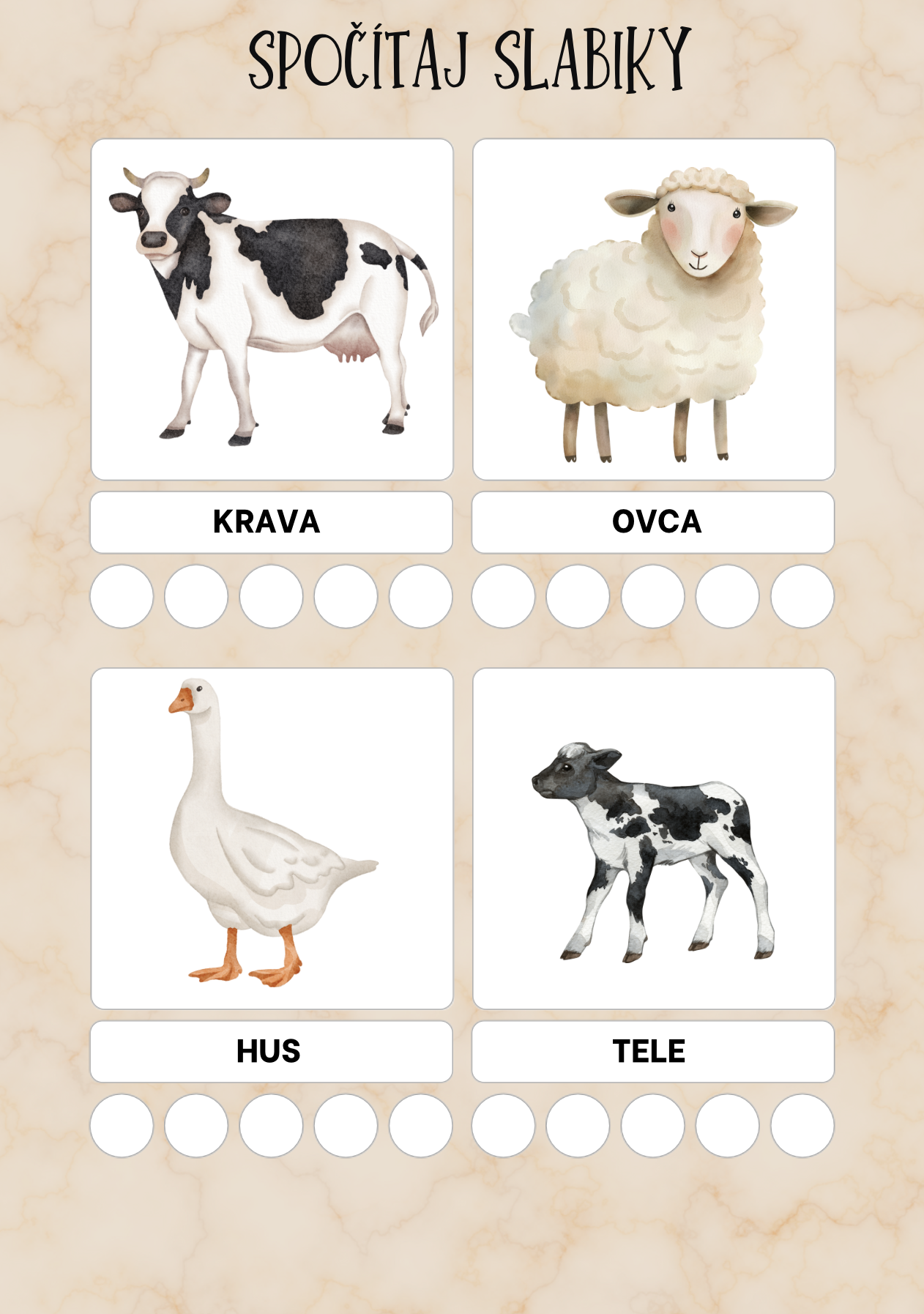 🔹 Kto čo dáva (krava – mlieko, včela – med…)