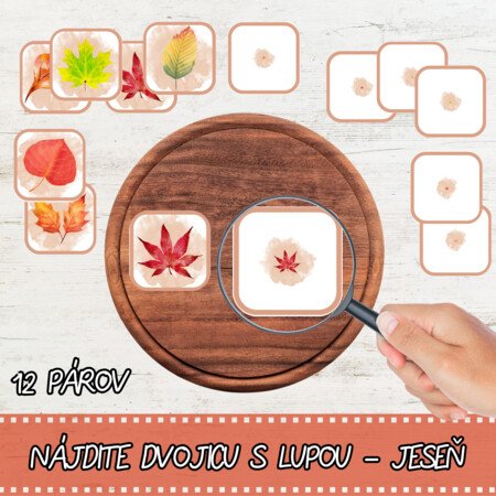 Súčasťou PDF materiálu je 24 kariet (12 párov) s jesennými motívmi, ktoré deti zaujmú a vtiahnu do hry.