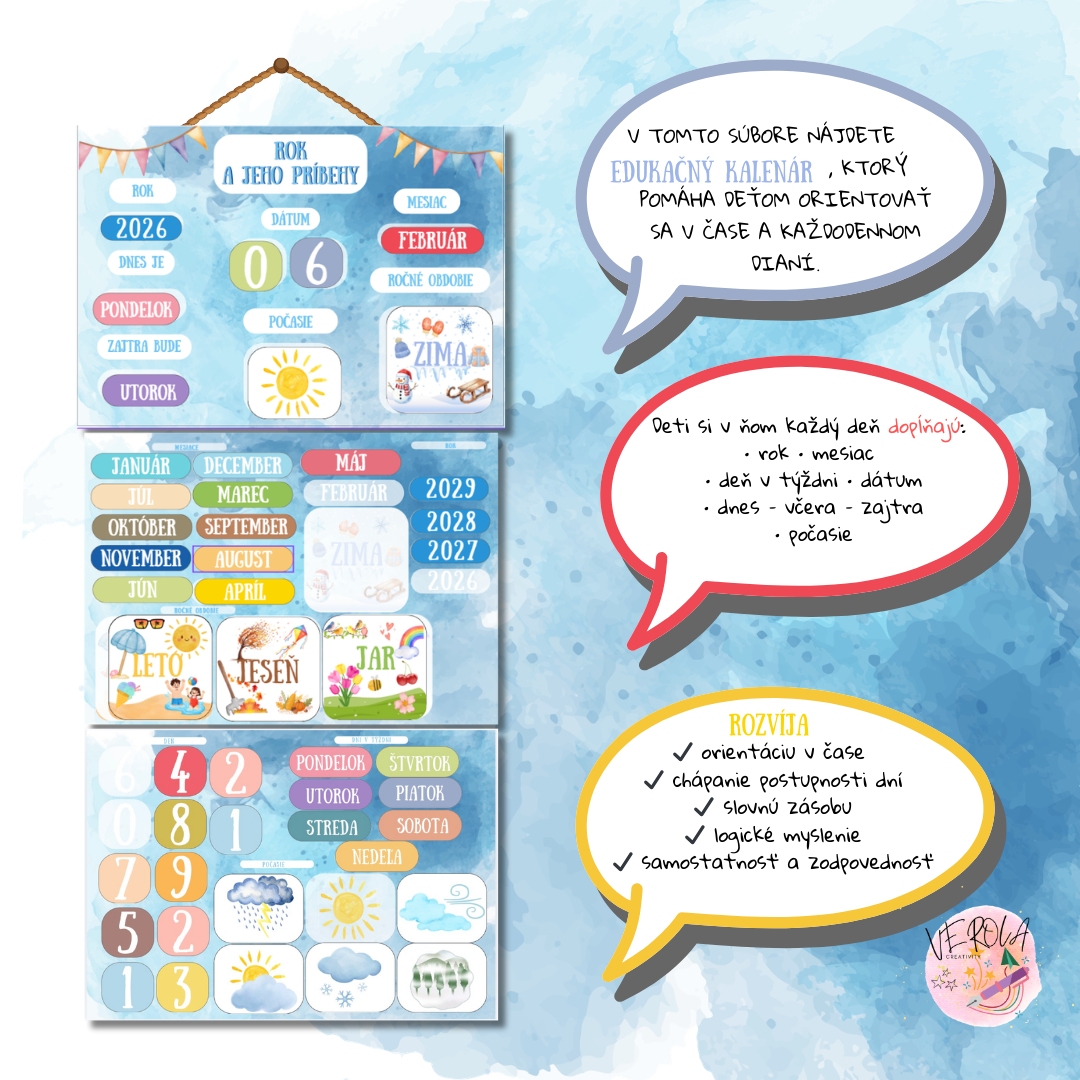 V tomto súbore nájdete edukačný kalendár, ktorý pomáha deťom orientovať sa v čase a každodennom dianí.