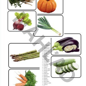 Súbor obsahuje 30 obrázkov zeleniny vrátane zoznamu. Súbor je vo formáte PDF Súbor je možné využiť ako obrázkovú brožúru