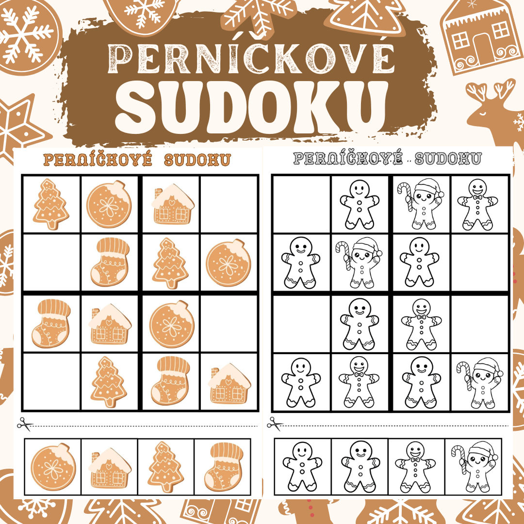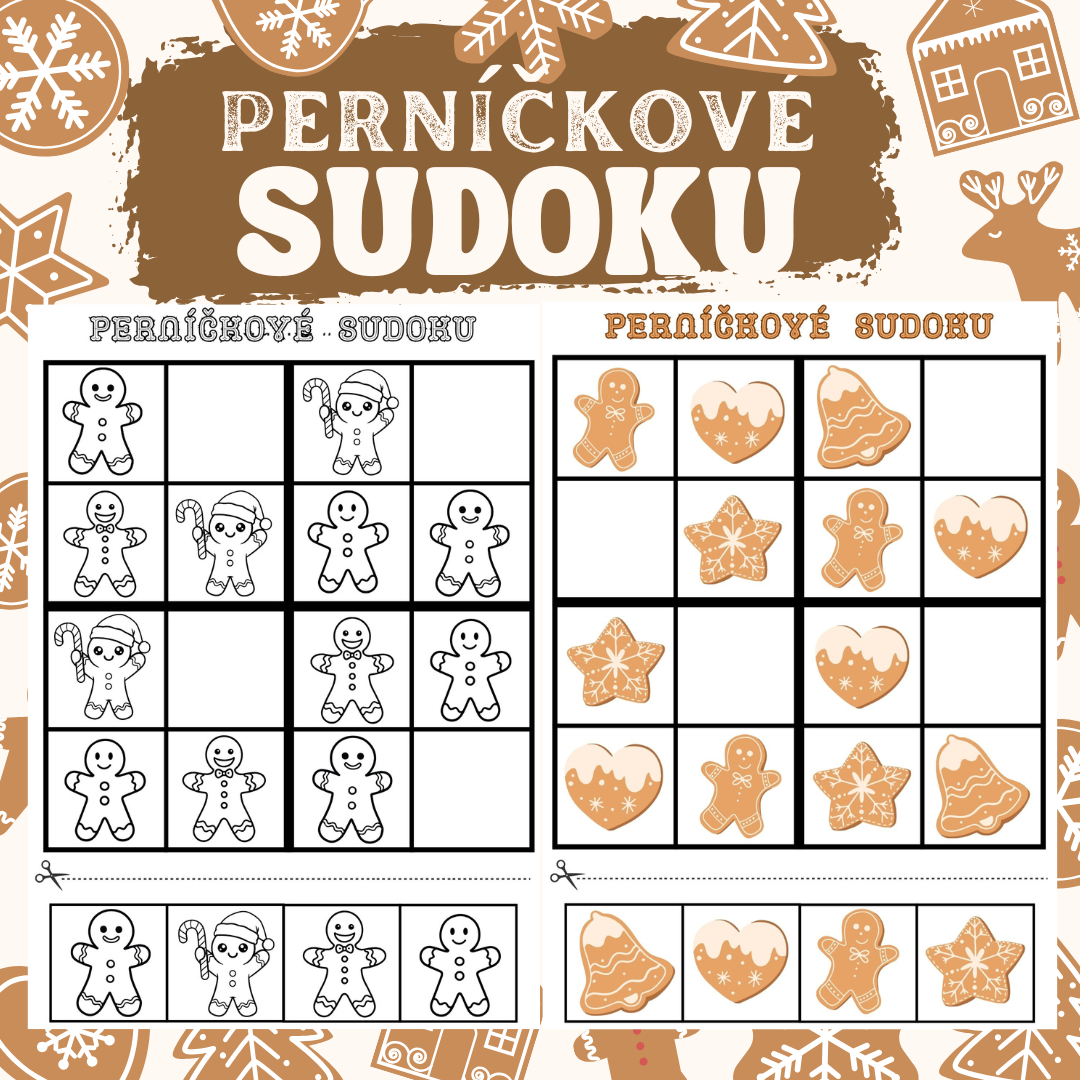 Ďakujem vám za zakúpenie Perníčkového sudoku, ktoré vám odporúčam vytlačiť, či už farebne, alebo čierno bielo. Dve strany sú farebné a dve sú čiernobiele -tie si dieťa môže vyfarbiť. Úlohou dieťaťa je vystrihnúť obrázky a nalepiť ich na správne miesto tak, aby platili pravidlá sudoku - a to, že v riadku a stĺpci sa obrázky nesmú opakovať.