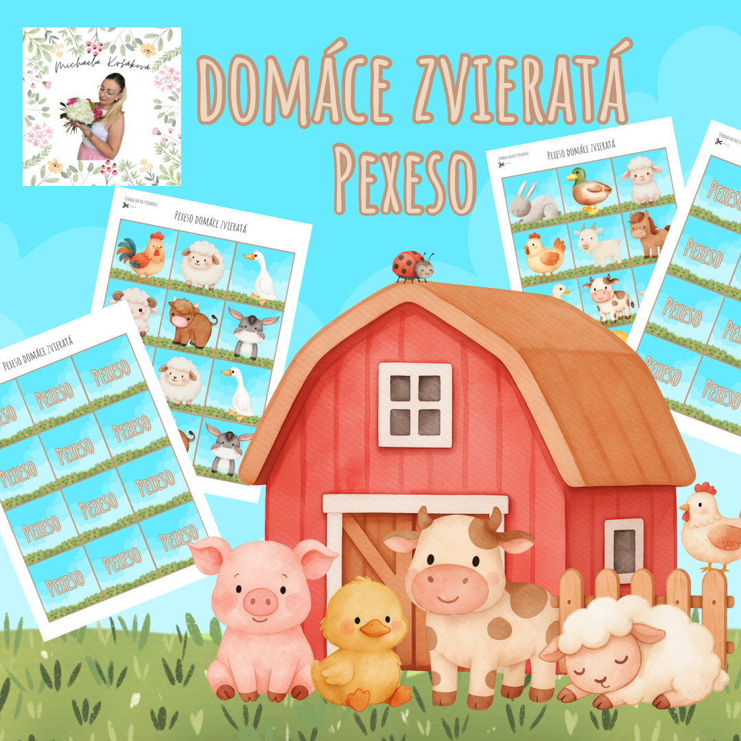 Pexeso domáce zvieratá Súbor obsahuje 18 obrázkov zvierat 36 kartičiek