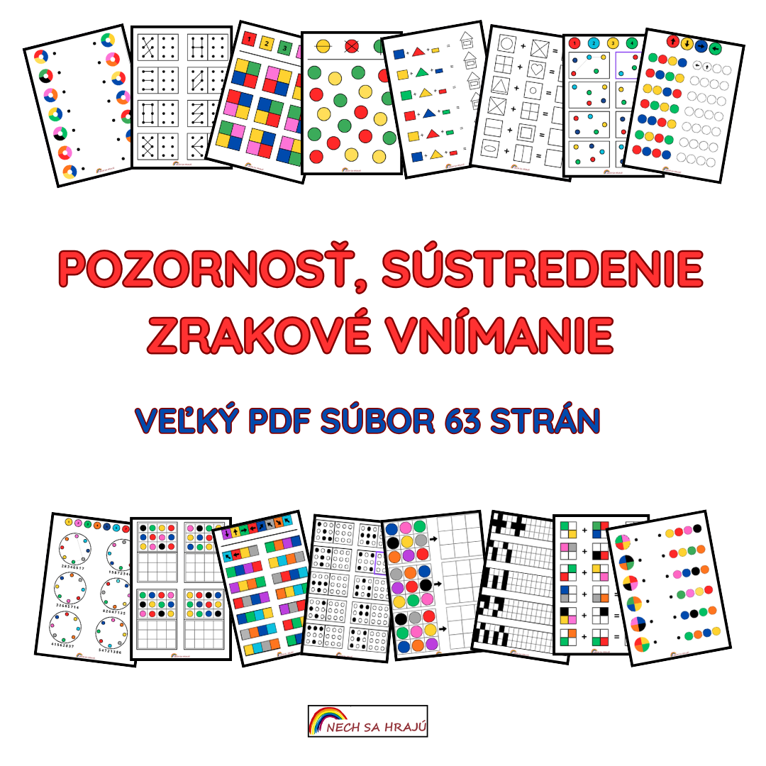 63 strán zameraných na pozornosť, sústredenie a zrakové vnímanie. Súbor obsahuje rozmanité aktivity v rôznej náročnosti na rozvoj kognitívnych schopností a podporu viacerých oblastí.