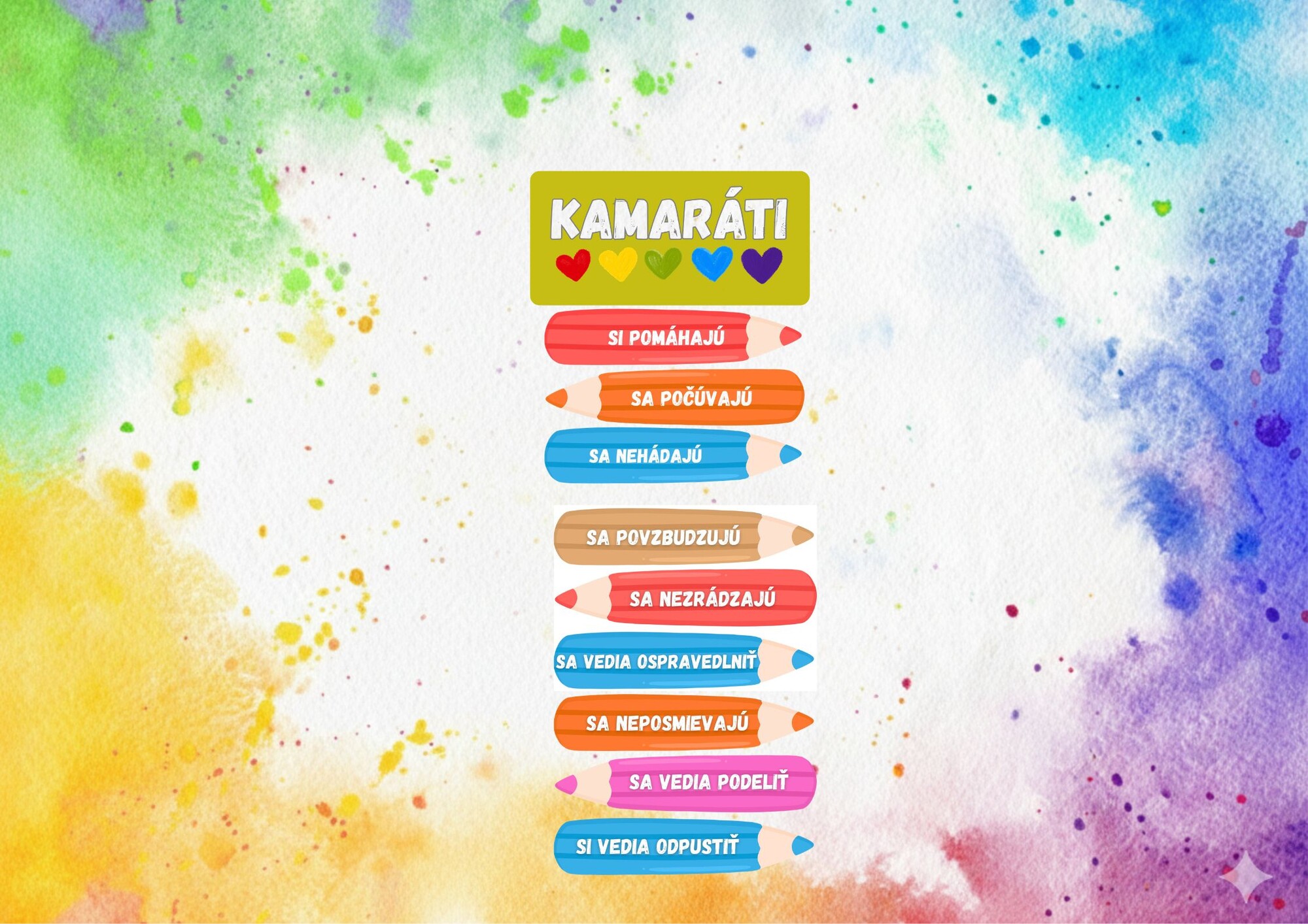 Materiál môžete využiť ako výzdobu triedy, podklad k rozhovoru na triednickej hodine alebo ako spoločnú dohodu triedy.