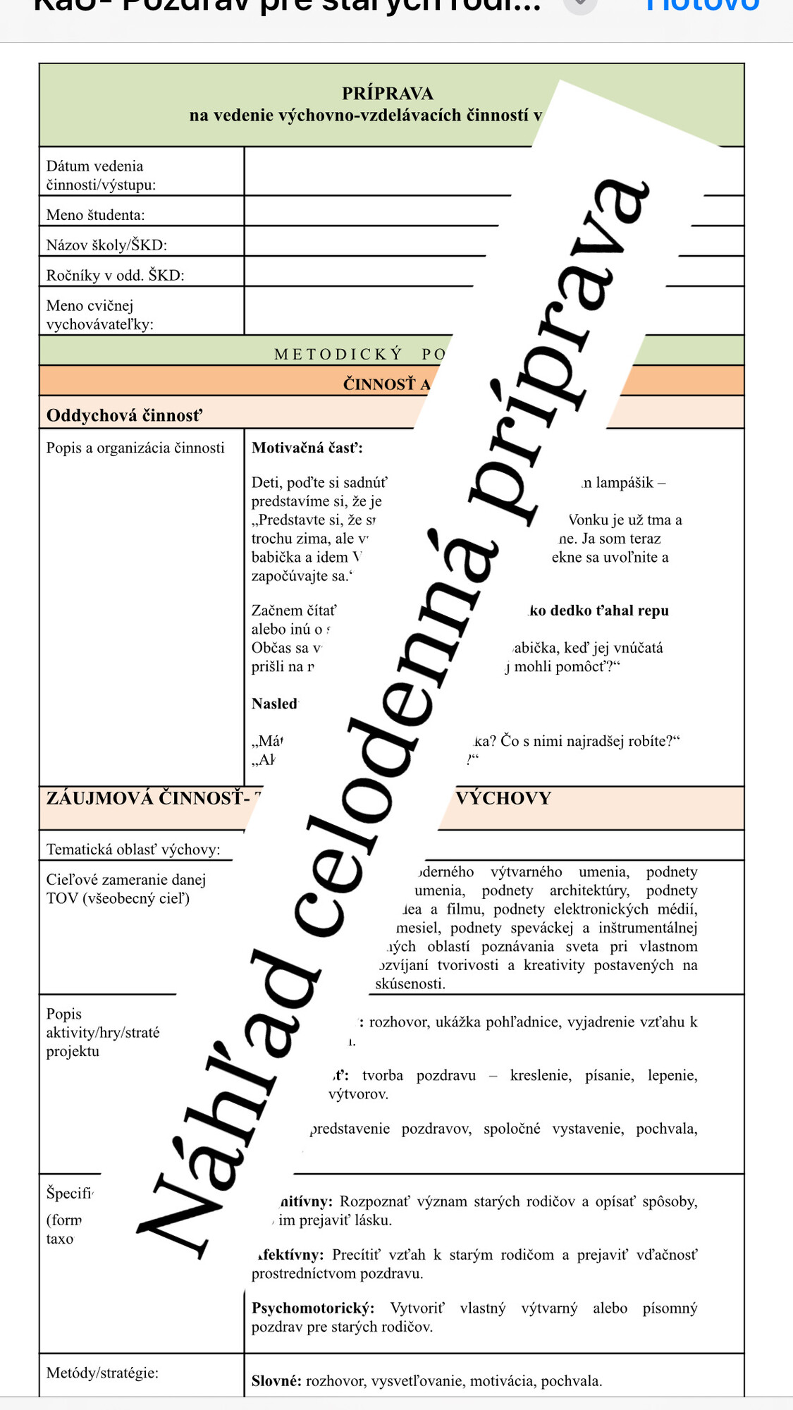 Príprava hodiny/lekcie