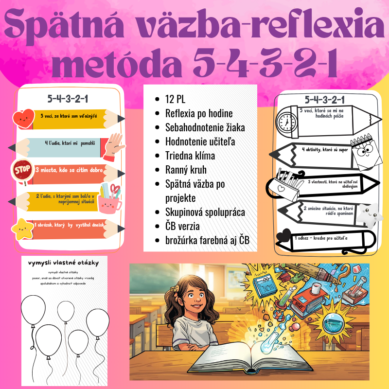 Materiál prináša modernú a hravú formu reflexie a hodnotenia pomocou metódy 5–4–3–2–1.