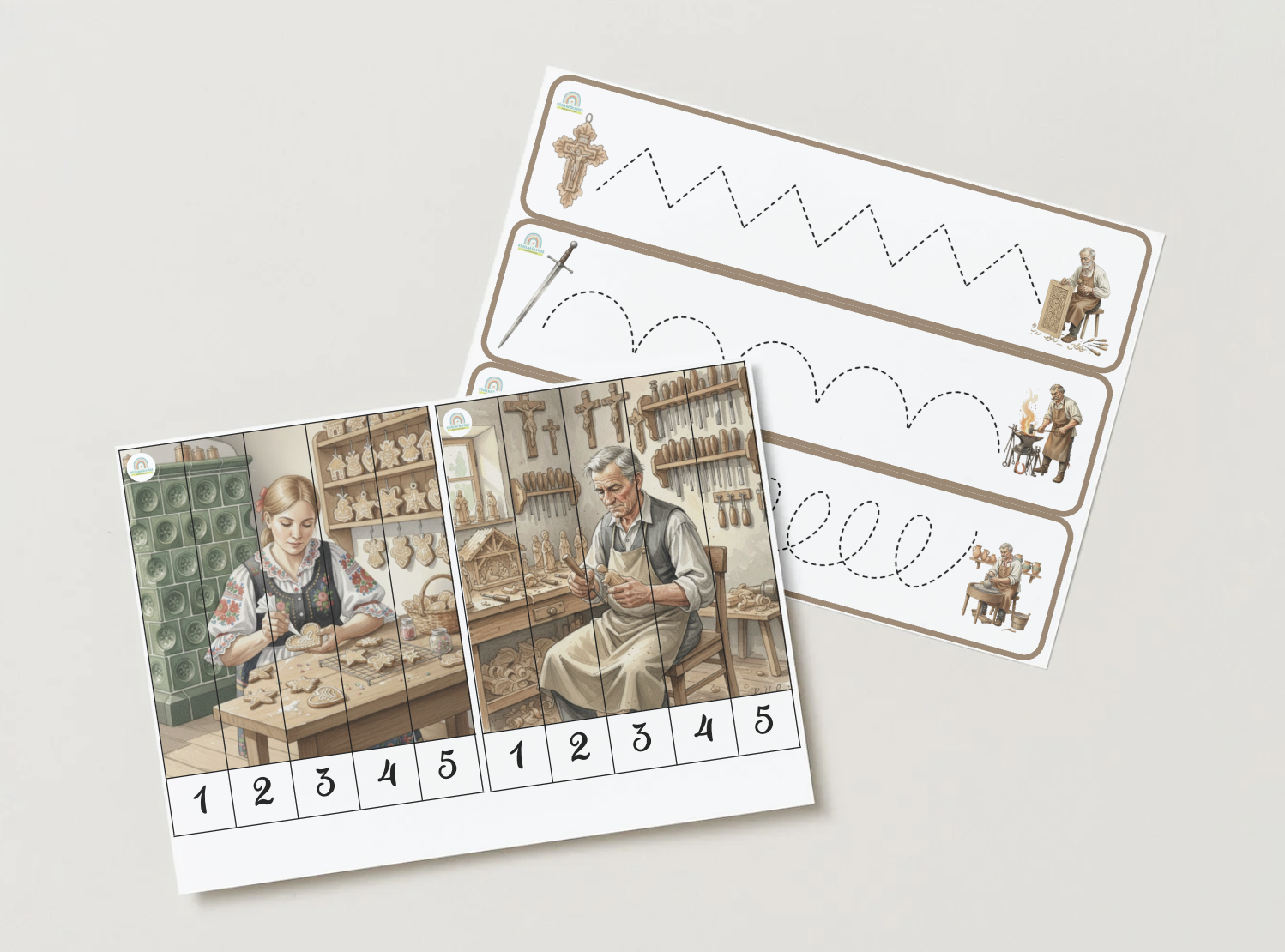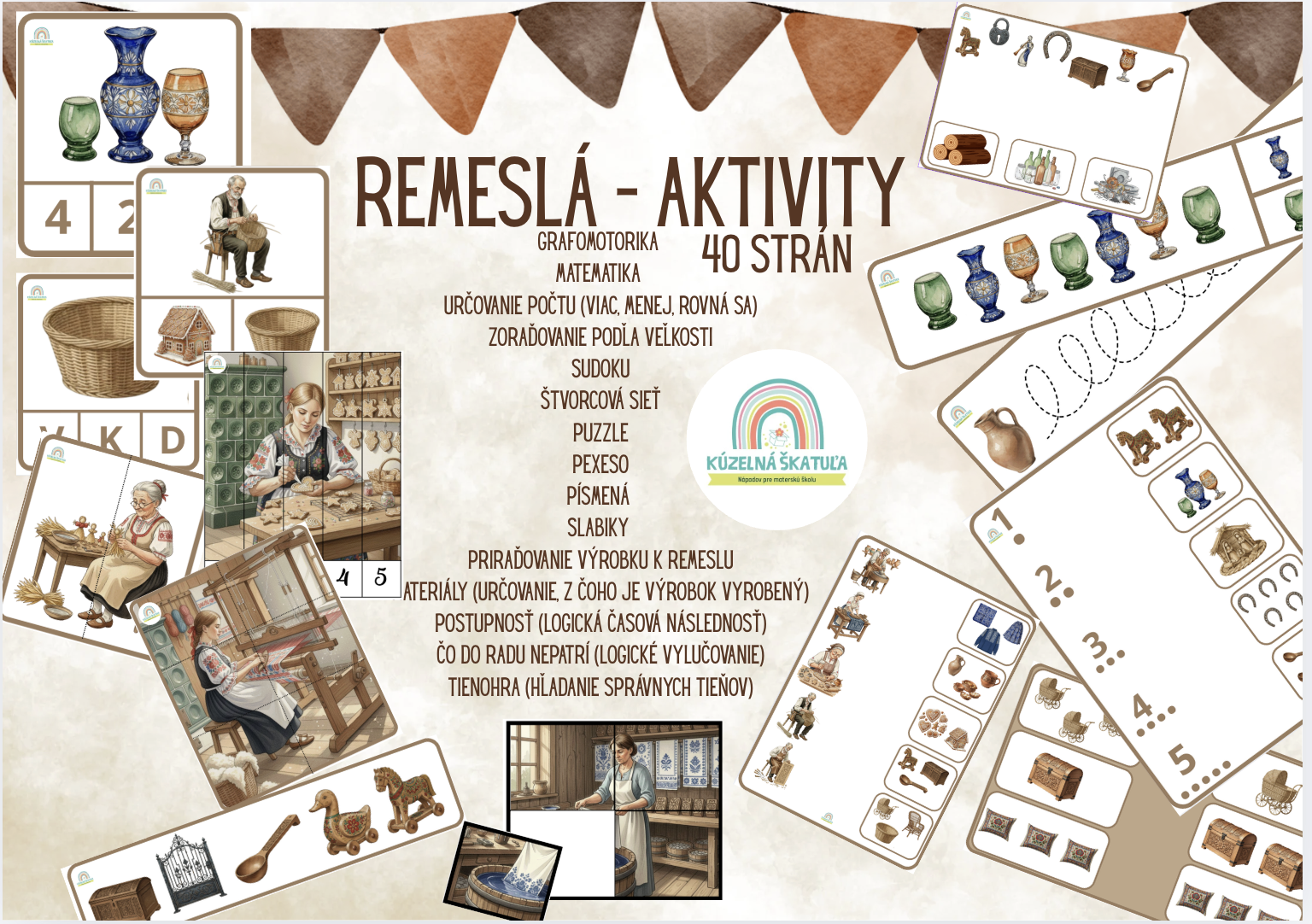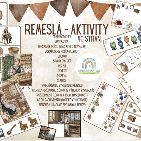 Ahojte! Pripravila som pre vás komplexný vzdelávací materiál na tému tradičných remesiel, ktorý je určený najmä pre deti v materských školách. Celý súbor som zostavila tak, aby hravou formou rozvíjal všetky dôležité oblasti predškolského vývinu.