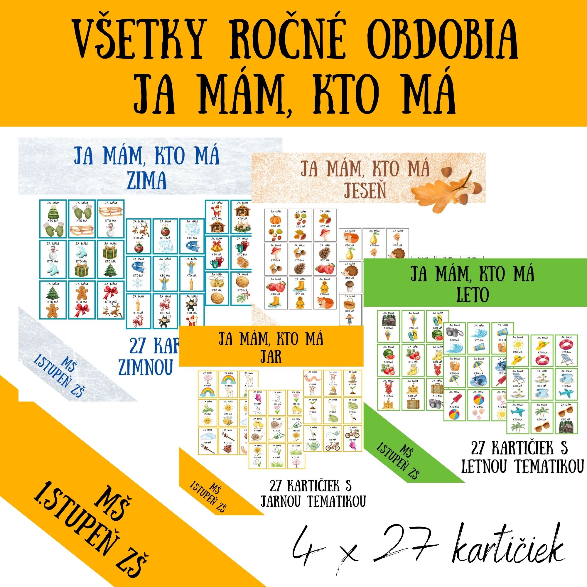 Súbor obsahuje 4x27 kartičiek hry ja mám, kto má. Je zameraný na zopakovanie symbolov ročných období - každé ročné obdobie zvlášť. Zvýhodnený balík.