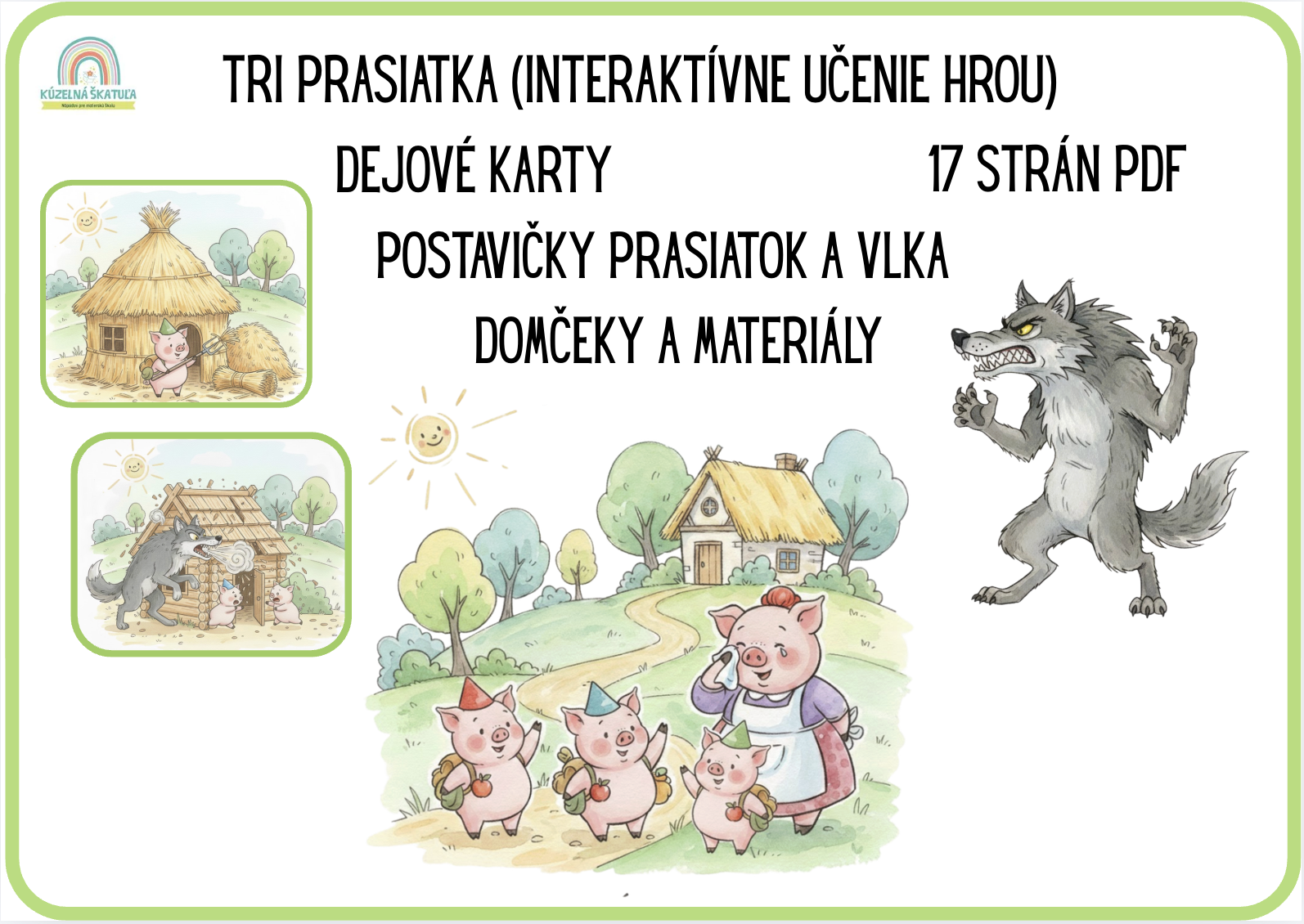 Pripravila som pre vás (a vašich drobcov) komplexný vzdelávací súbor k obľúbenej rozprávke O troch prasiatkach. Tento materiál som navrhla tak, aby deťom nepomohol len príbeh pasívne počúvať, ale aby sa stali jeho súčasťou a aktívne rozvíjali svoju slovnú zásobu, logiku a jemnú motoriku.