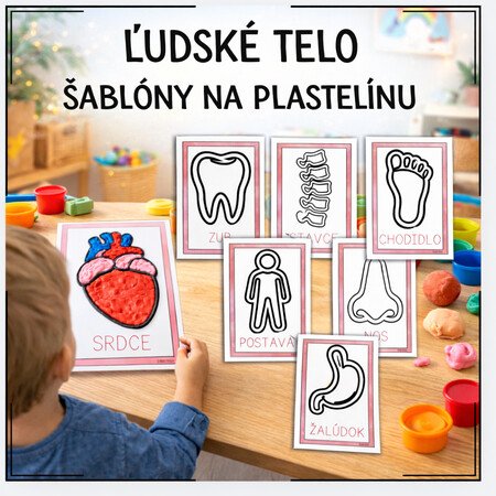 Hravá vzdelávacia sada šablón na plastelínu s témou ľudského tela, ktorá podporuje jemnú motoriku, kreativitu, sústredenie aj poznávanie vlastného tela. Deti si pomocou plastelíny dotvárajú jednotlivé obrázky.