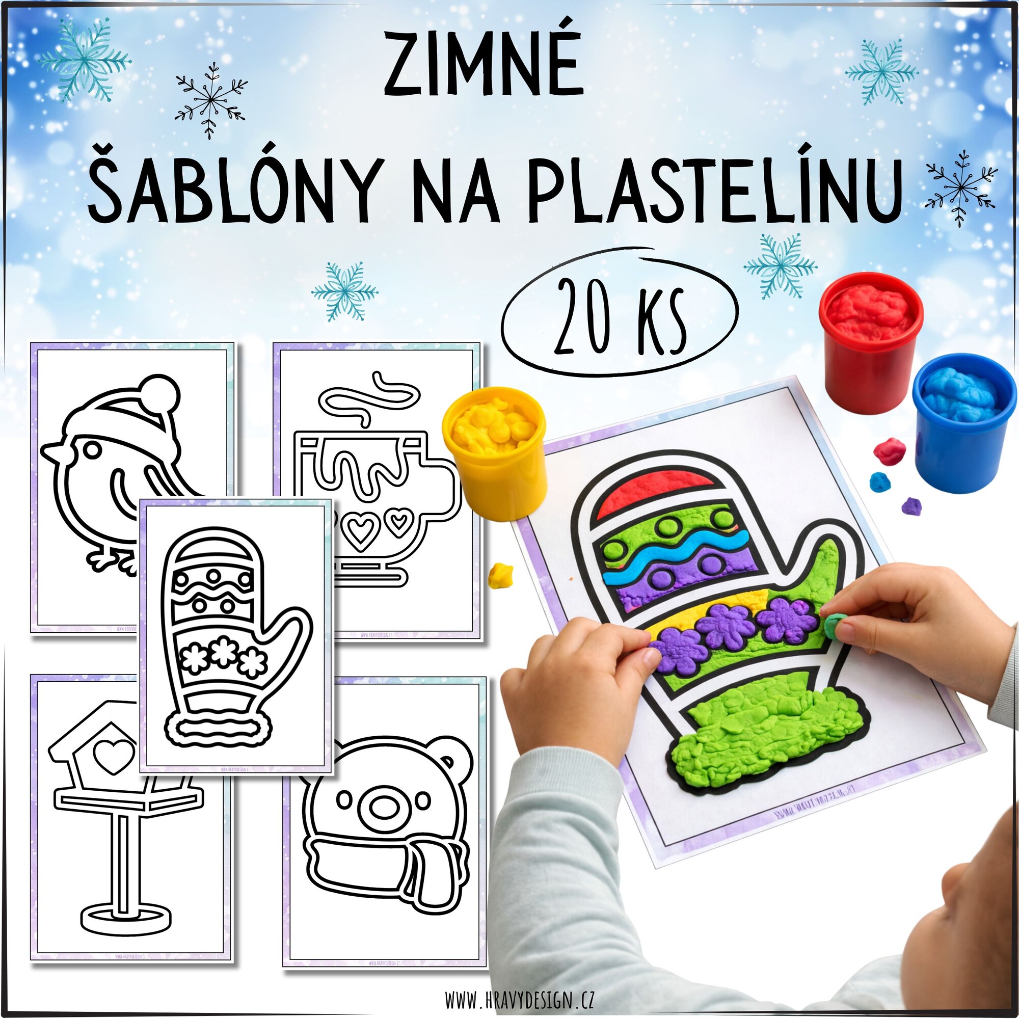 Súbor obsahuje 20 zimných šablón na plastelínu vo formáte A4. Obrázky majú jednoduché tvary a silné obrysy, vďaka ktorým sú vhodné aj pre malé deti.