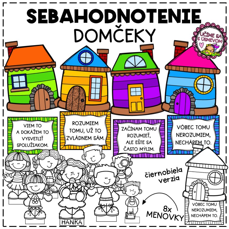 Súbor obsahuje domčeky s popisom a 8 obrázkov detí s priestorom na meno. Súbor je vo farebnej a čiernobielej verzií.