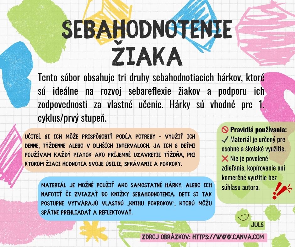 ✨ Sebahodnotiace hárky pre žiakov ✨
