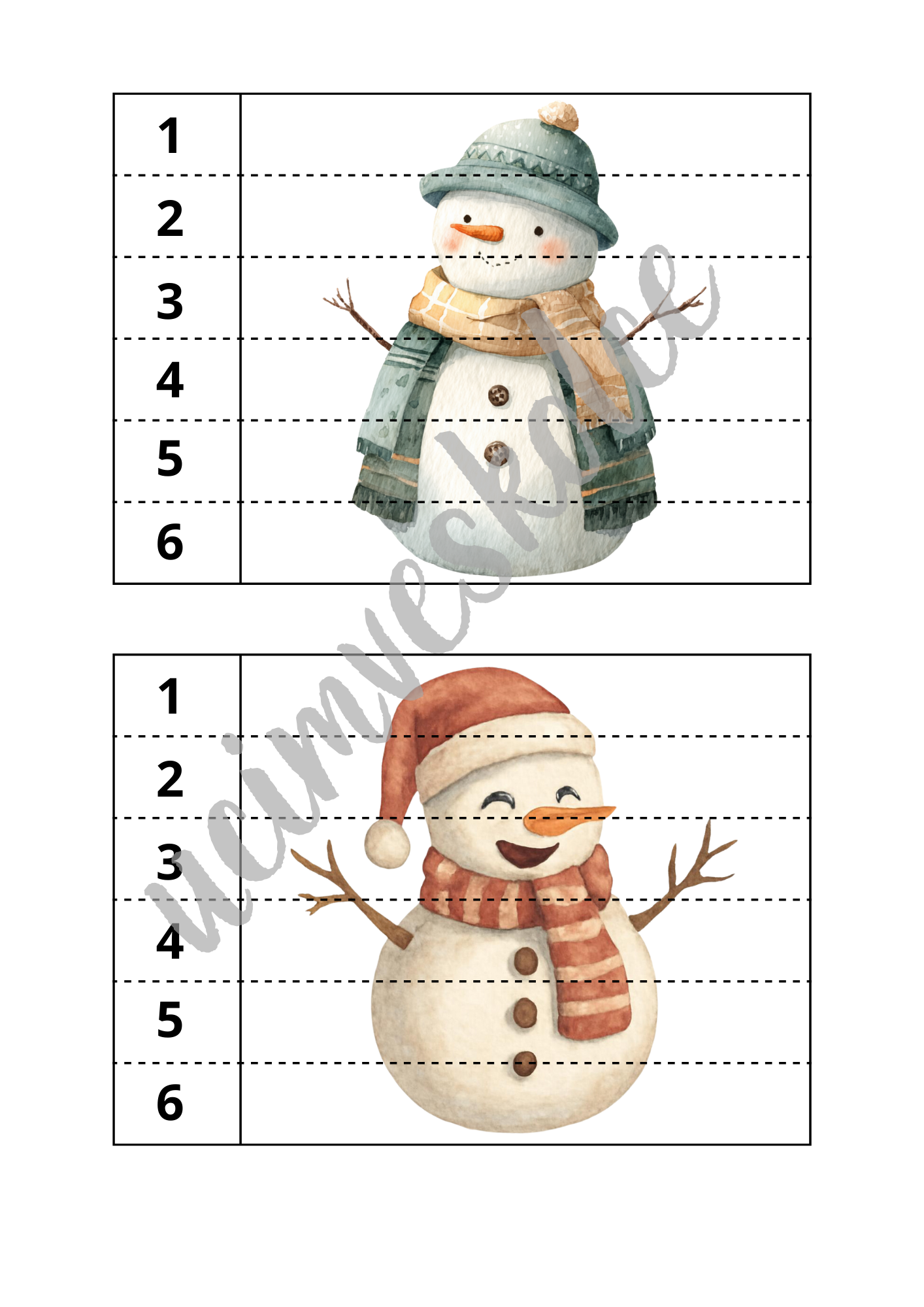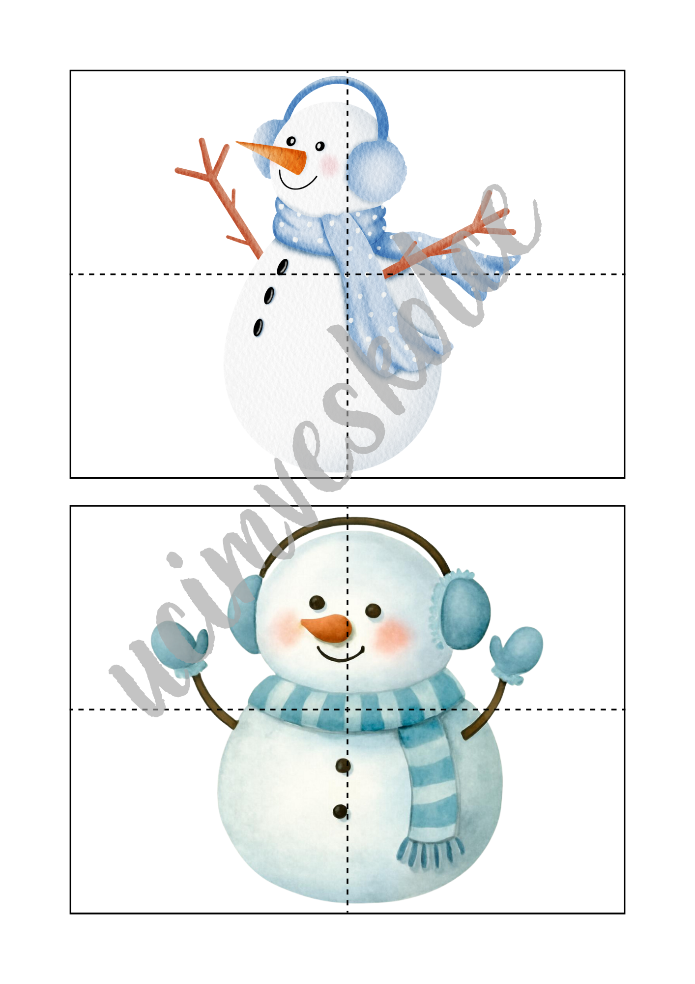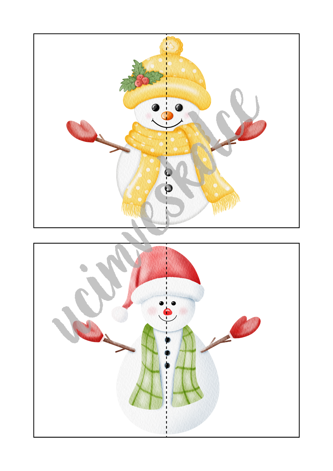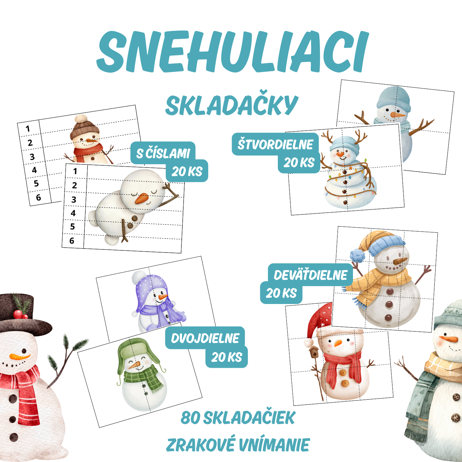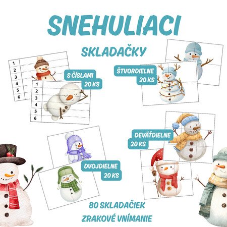 Súbor obsahuje celkom 80 skladačiek s obrázkami snehuliakov.
