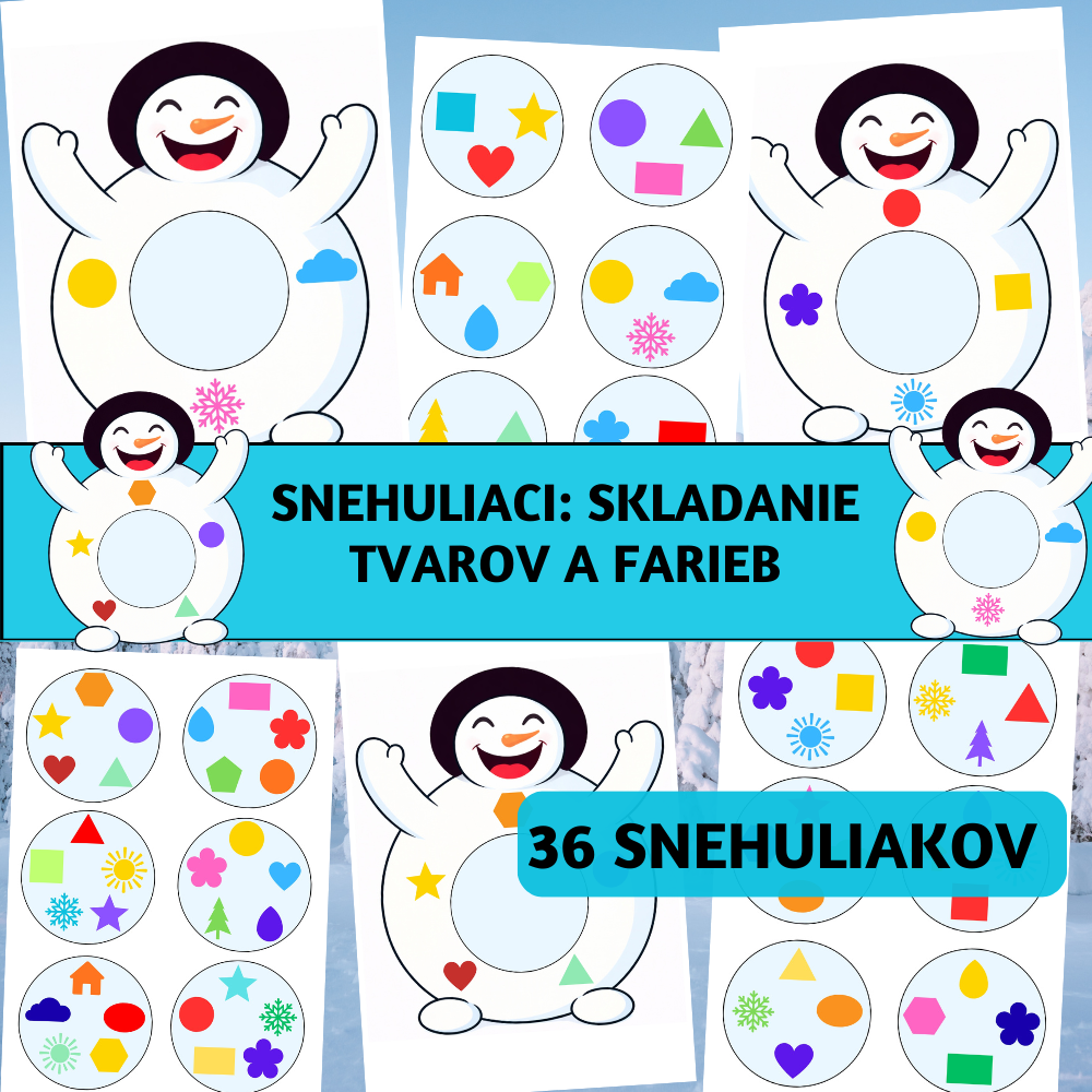 Zimná aktivita, ktorá je ideálna na samostatnú prácu detí aj do centier aktivít. Deti skladajú snehuliakov podľa farieb a symbolov, hľadajú správne dvojice. Aktivita je prehľadná, hravá a vďaka viacerým úrovniam obtiažnosti ju jednoducho prispôsobíte rôznym schopnostiam detí – v jednej triede aj počas školského roka.