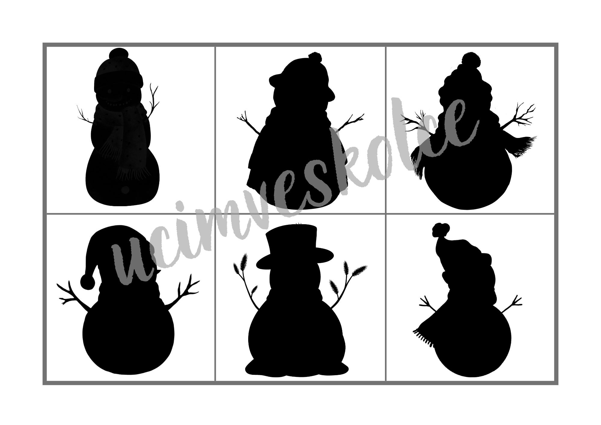 Úlohou detí je položiť kartičku s obrázkom snehuliaka na správne miesto v tabuľke s tieňmi.