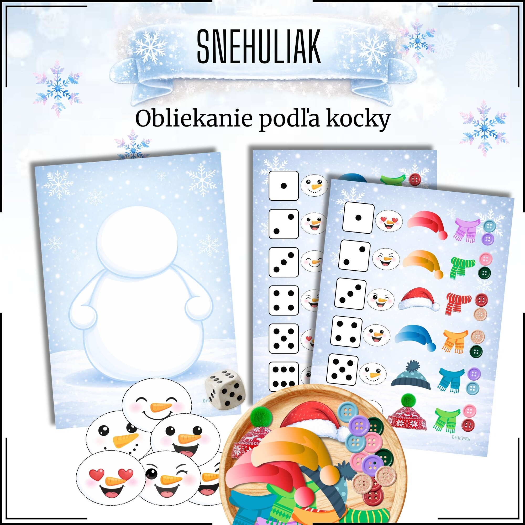 Jednoduchá zimná hra, pri ktorej si deti obliekajú snehuliaka podľa hodu hracou kockou. Deti hádžu kockou, vyberajú zodpovedajúcu tvár a oblečenie a postupne snehuliaka dotvárajú.