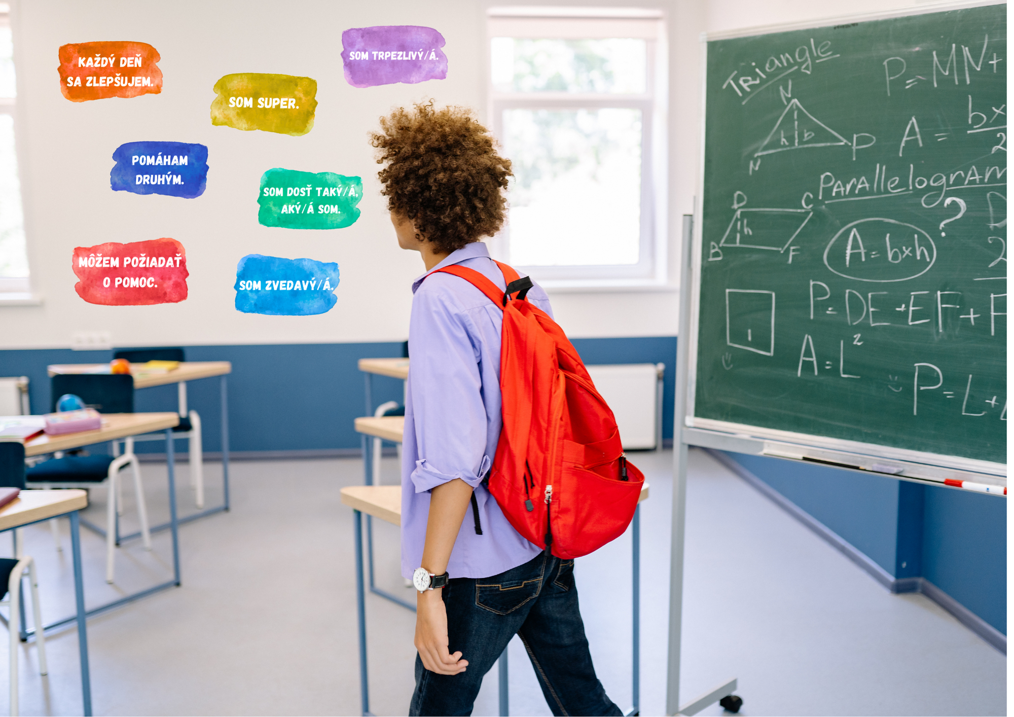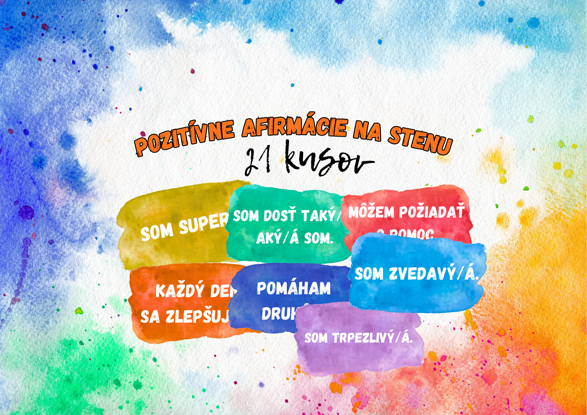 Táto výzdoba na stenu obsahuje 22 pozitívnych afirmácií formulovaných v 1. osobe jednotného čísla, aby si ich deti mohli prirodzene čítať ako vlastné výroky.