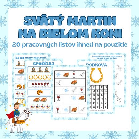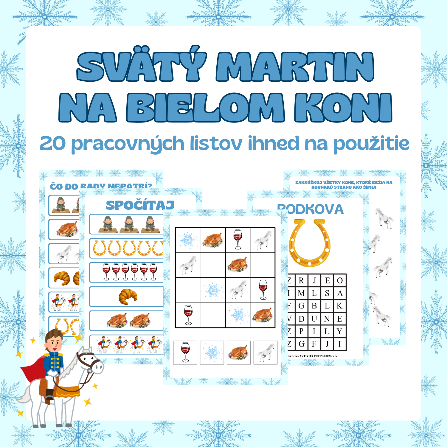 Hľadáte premyslený, hravý a pestrý materiál, ktorý deti nielen zabaví, ale aj niečo naučí? Prinášam vám pracovné listy na tému Svätý Martin na bielom koni, ktoré vám ušetria čas a uľahčia prácu.