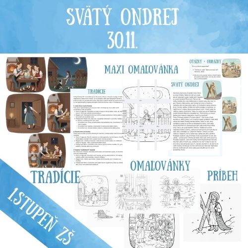 - Súbor si len vytlačíte, príbeh si s deťmi prečítate, vediete rozhovor. Mega omaľovánku vytlačíte a zlepíte. Pomocou obrázkov tradícií vysvetľujete tradície. Môžte ich rozmiestniť aj po triede a zahrať si najskôr hru hľadanie tradícií, keď ich žiaci všetky nájdu následne sa ich môžte spýtať či nejakú tradíciu už poznajú. Taktiež si ich môžte vytlačiť dvojmo a zahrať si pexeso.