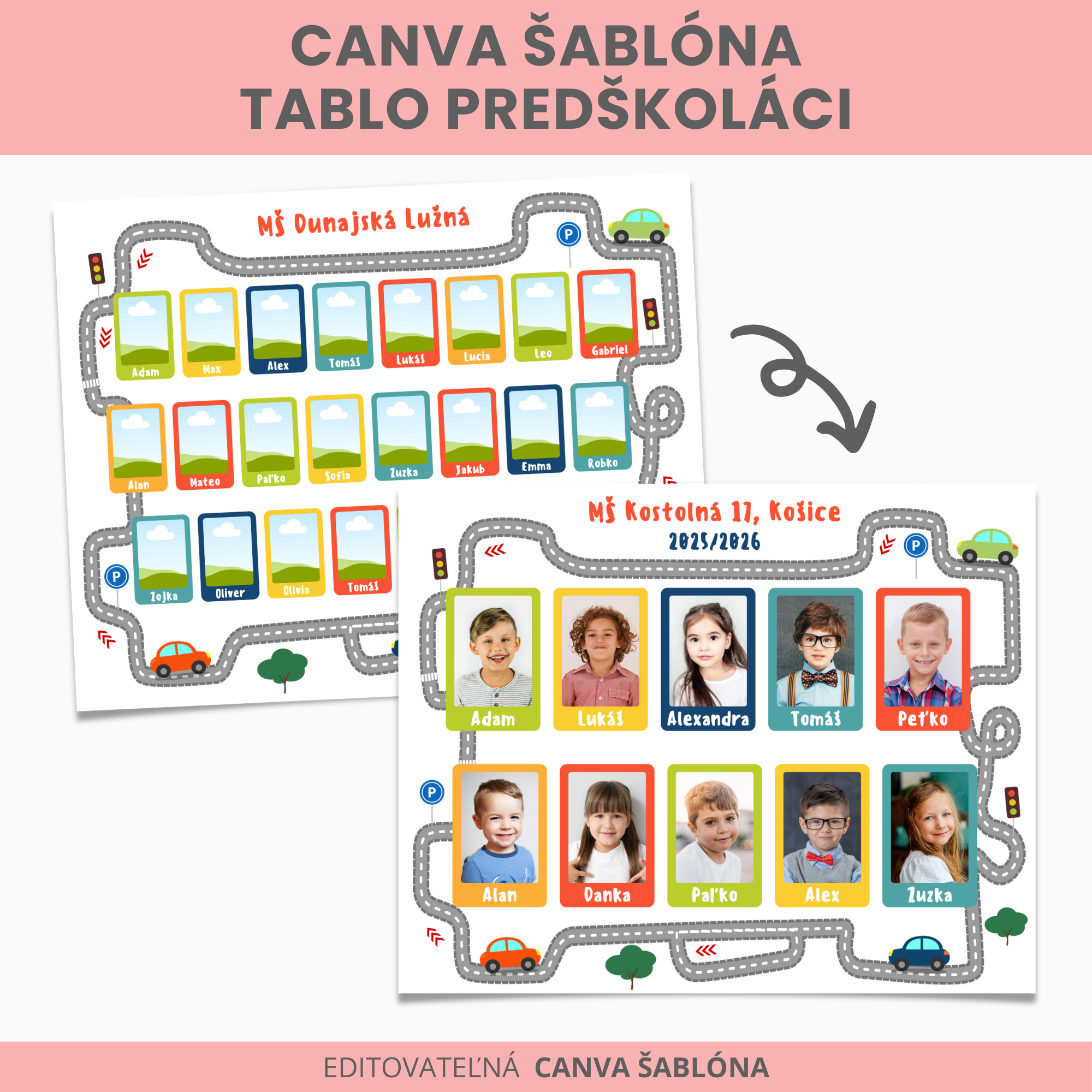 Vytvorte si krásne koncoročné tablo pre predškolákov jednoducho a bez stresu. Táto šablóna je navrhnutá špeciálne pre deti, ktoré sa lúčia s materskou školou a čaká ich nový krok – nástup do školy.