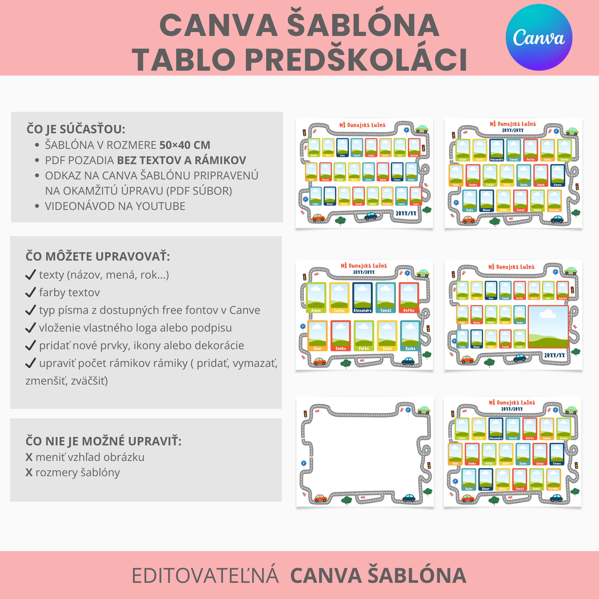 - jednoduchá úprava priamo v Canve ( postačuje bezplatná verzia)