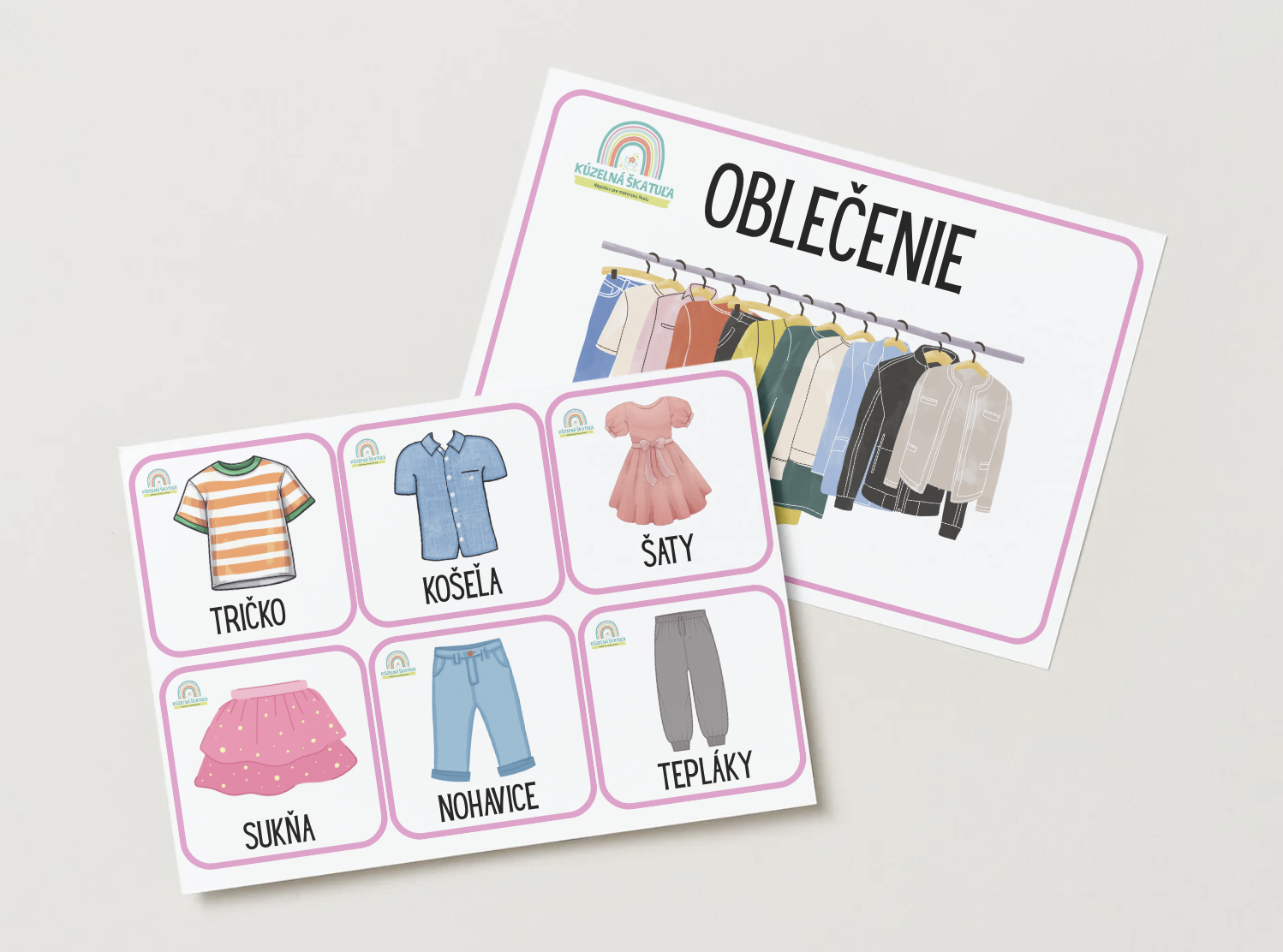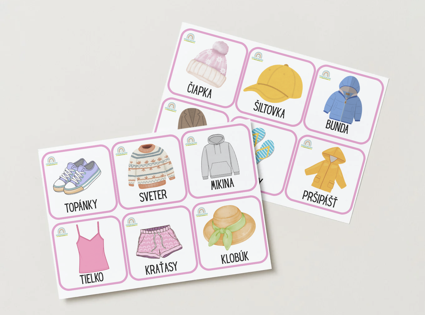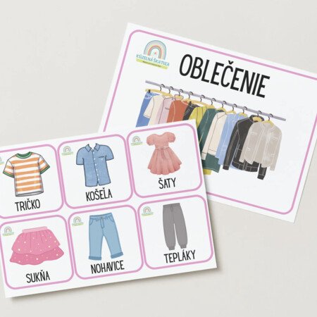 Tematické kartičky: oblečeniePDF súbor obsahuje 24 obrázkov oblečenia.