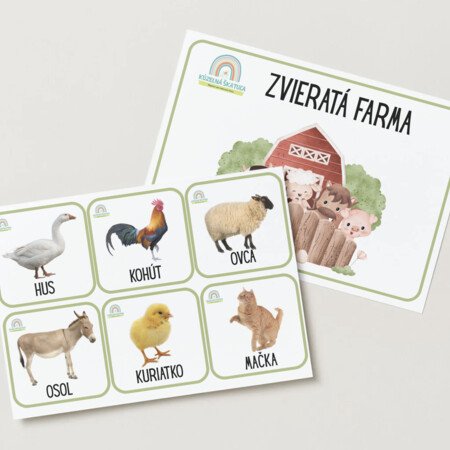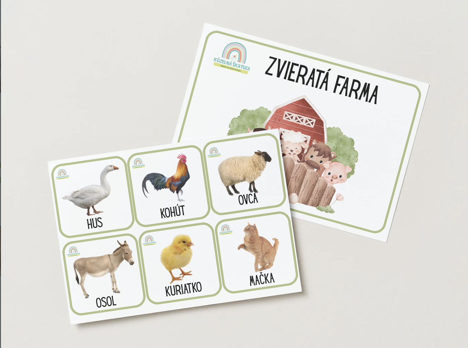 PDF súbor obsahuje 21 tématických kariet zvierat na farme