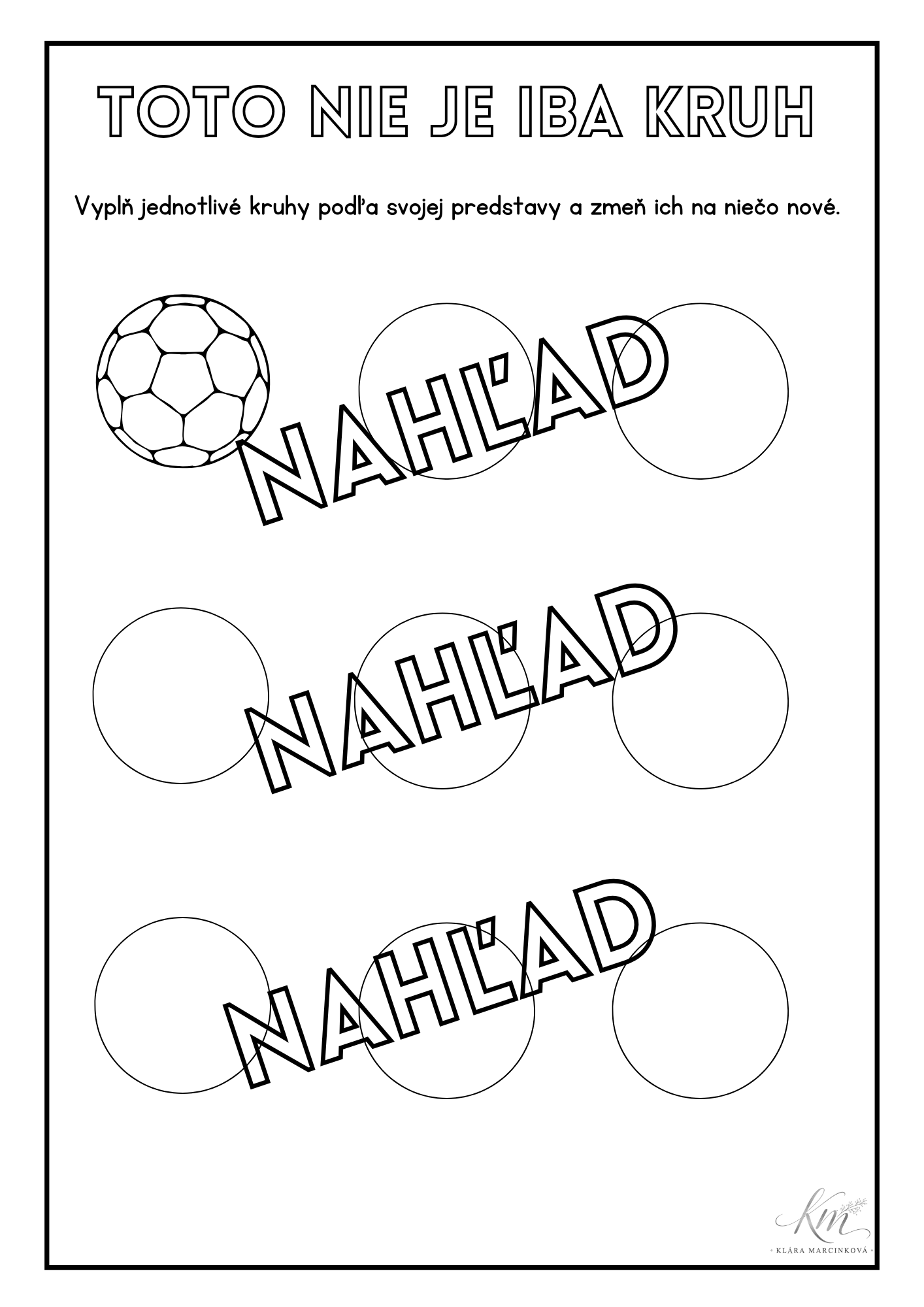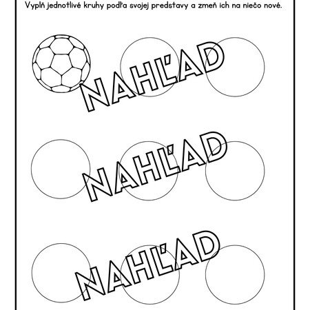 Kreatívny pracovný list, v ktorom sa deti snažia predstaviť si, čo všetko môže mať tvar kruhu. V súbore sú tri úrovne so zvyšujúcim sa počtom kruhov do ktorých môžu dokresľovať, čo všetko môže znázorňovať kruh podľa svojej fantázie.