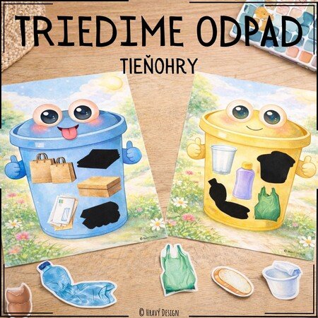 Deti pri aktivite priraďujú obrázky k jednotlivým smetným košom podľa ich tieňov. Každý odpadkový kôš predstavuje iný druh odpadu (napr. papier, plast, sklo, bioodpad a pod.), a deti sa tak prirodzene učia, kam čo patrí.