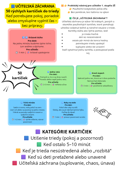 - Krátka poznámka pre učiteľa – presne vie, kedy kartičku použiť, čo rozvíja a ako dlho trvá.