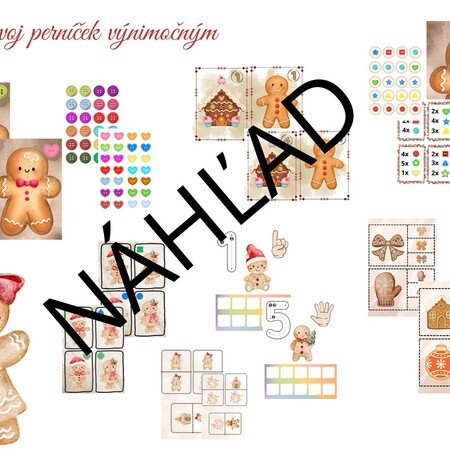 Deti si prezrú predlohu s číslom a do pripraveného perníčka nakreslia presný počet ozdôb. Úloha rozvíja počítanie, grafomotoriku a presnosť.