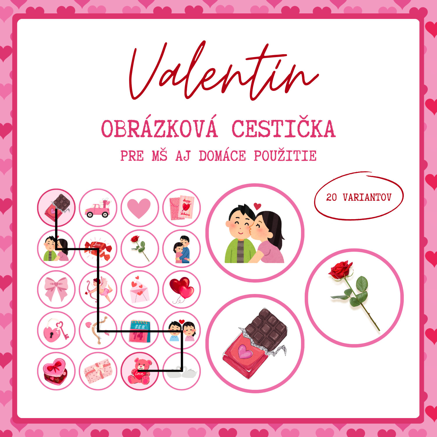 Hľadáte premyslený, hravý a pestrý materiál, ktorý deti nielen zabaví, ale aj niečo naučí? Prinášam vám zábavnú aktivitu na tému Valentín, ktorá vám ušetrí čas a uľahčí prácu.