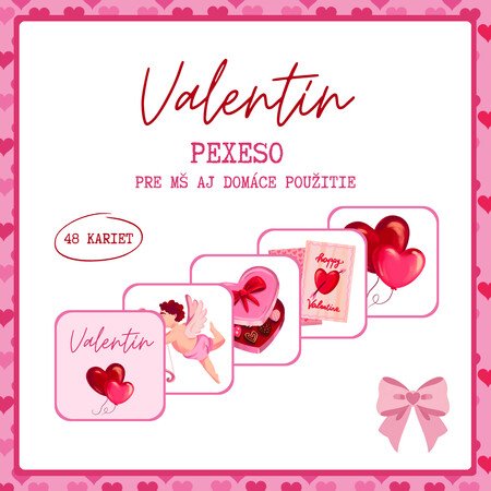 Hľadáte premyslený, hravý a pestrý materiál, ktorý deti nielen zabaví, ale aj niečo naučí? Prinášam vám pexeso na tému Valentín, ktoré vám ušetrí čas a uľahčí prácu.
