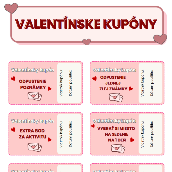 Odmeňte deti na Valentína kupónmi, ktoré im dajú trocha slobody vo výučbe.