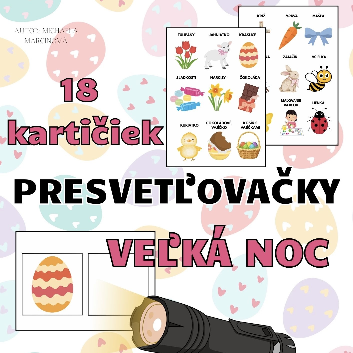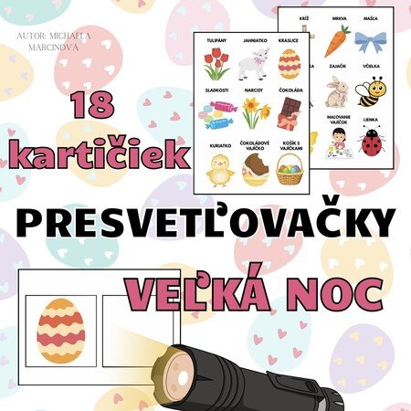 - 18 presvetľovacích kartičiek s motívmi Veľkej noci.