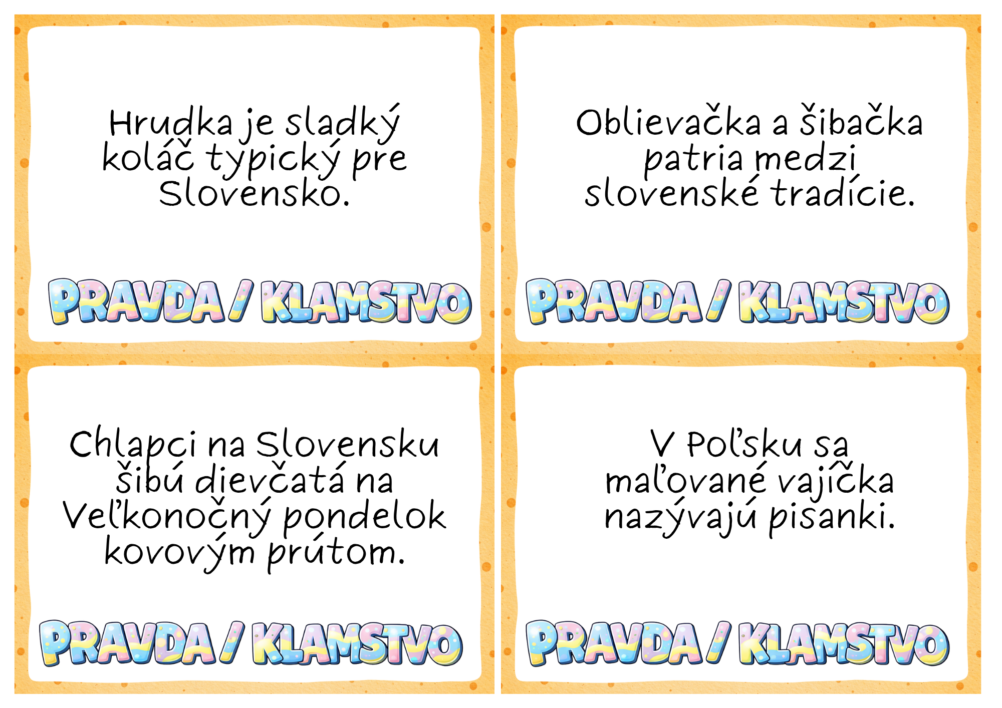 - aktivitu Pravda / Klamstvo na upevnenie vedomostí