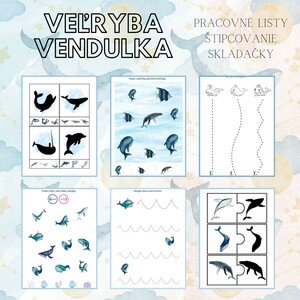 Súbor Veľryba Vendulka obsahuje kolíčkovacie kartičky (20), skladačky a PL so zameraním na: grafomotoriku jemnú motoriku zrakové vnímanie predmatematickú gramotnosť priestorovú orientáciu a iné