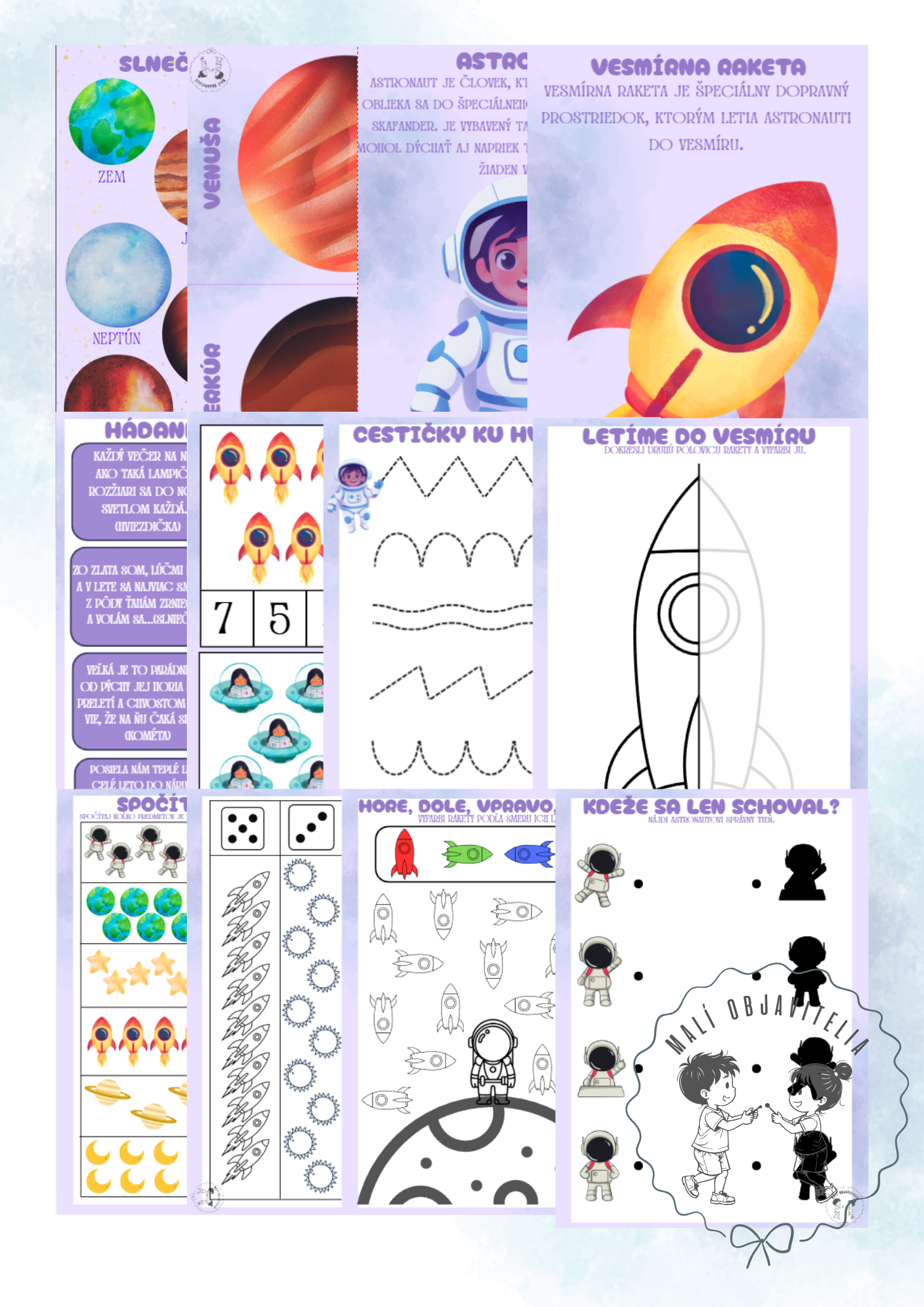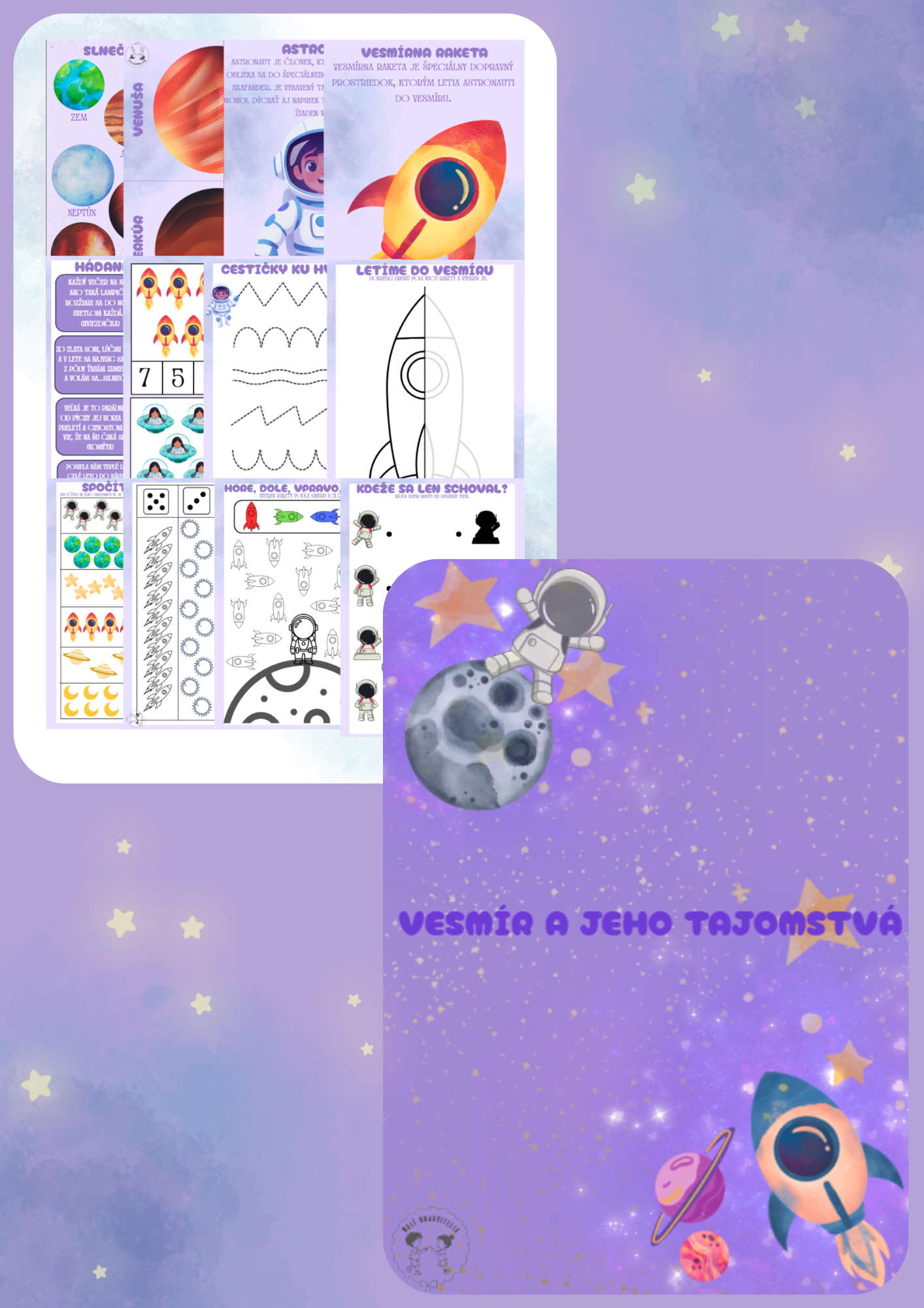 Krásny edukačný materiál vhodný pre detičky v materských školách na spoznávanie a objavovanie tajomstiev vesmíru 👩🚀