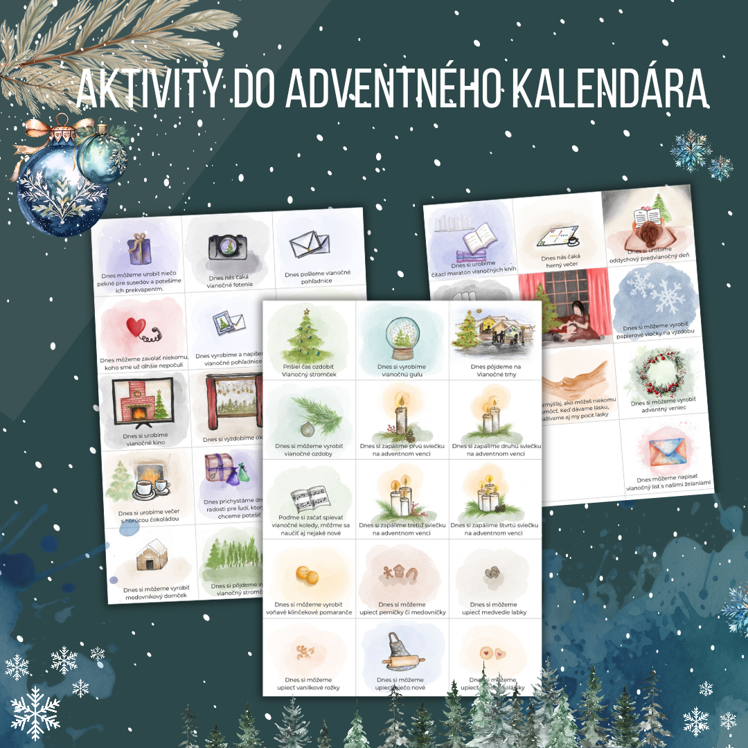 Tento súbor obsahuje aktivity do adventného kalendára, ktoré urobia advent a Vianoce niečím viac než len čakaním na štedrý deň a darčeky. Aktivity prinesú nápady na spoločné trávenie času a deti tak budú mať radosť celý mesiac.