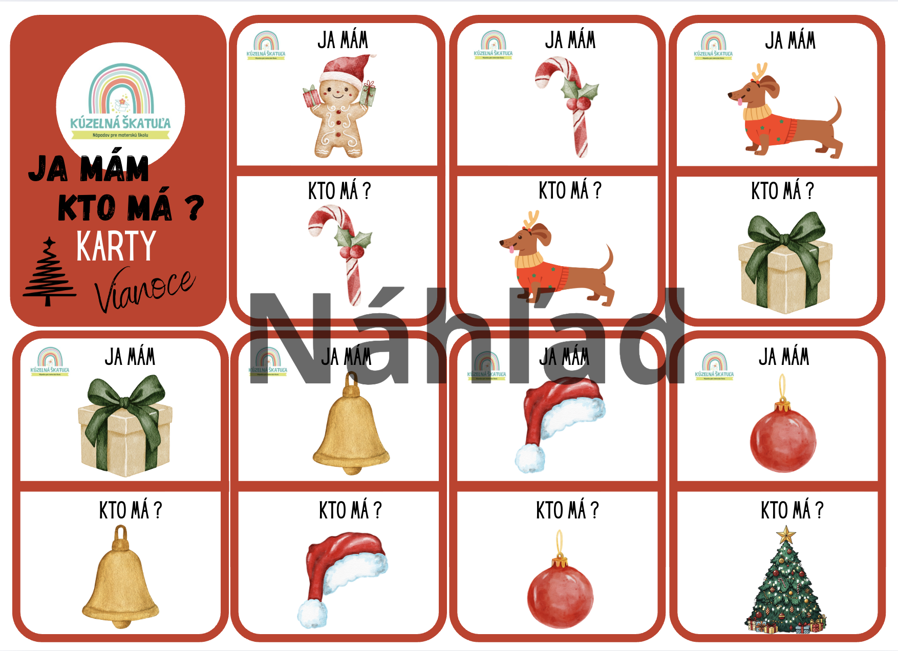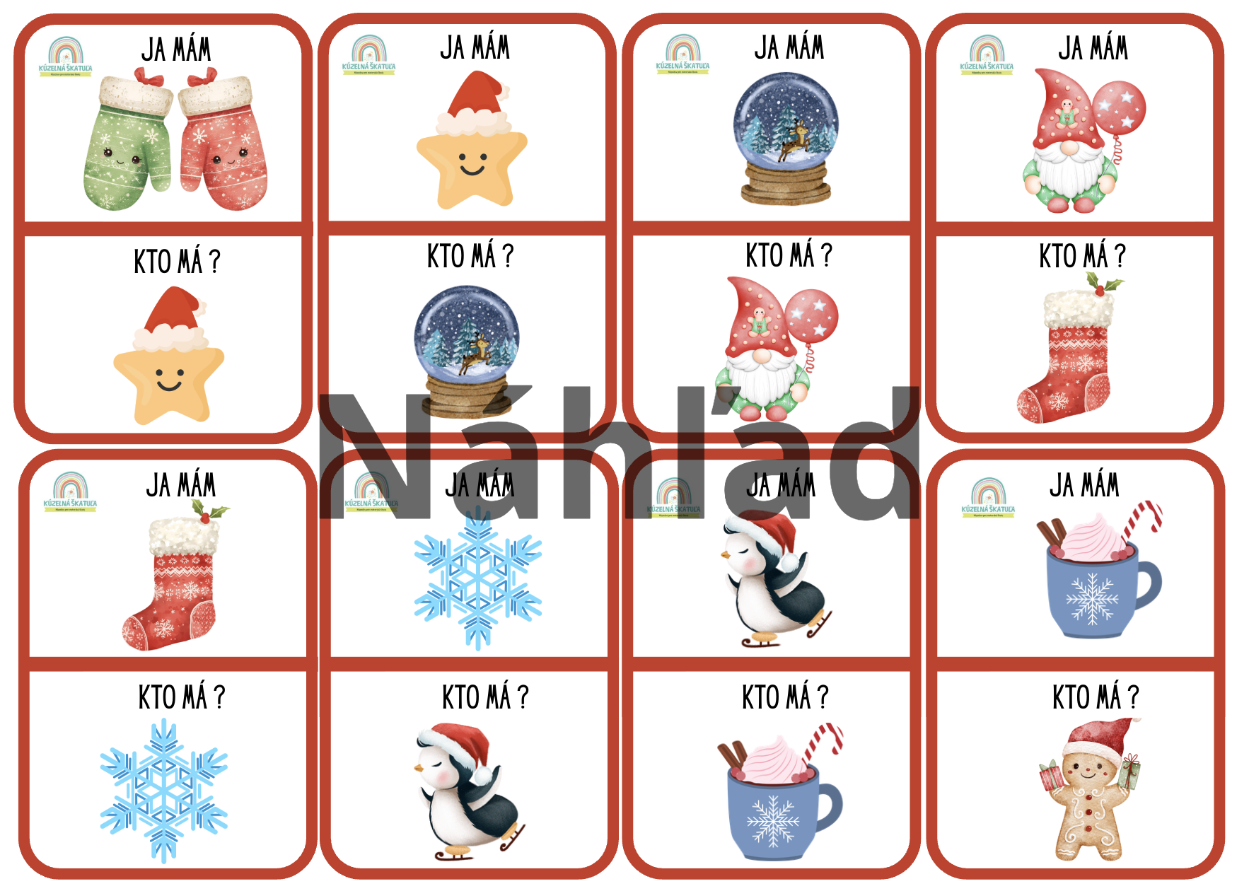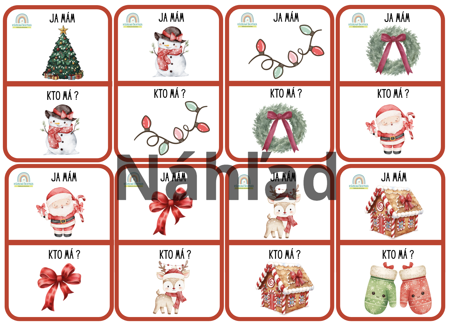 Zábavná a vzdelávacia hra pre deti: "Ja mám, kto má" s tematikou Vianoce! 23 kariet