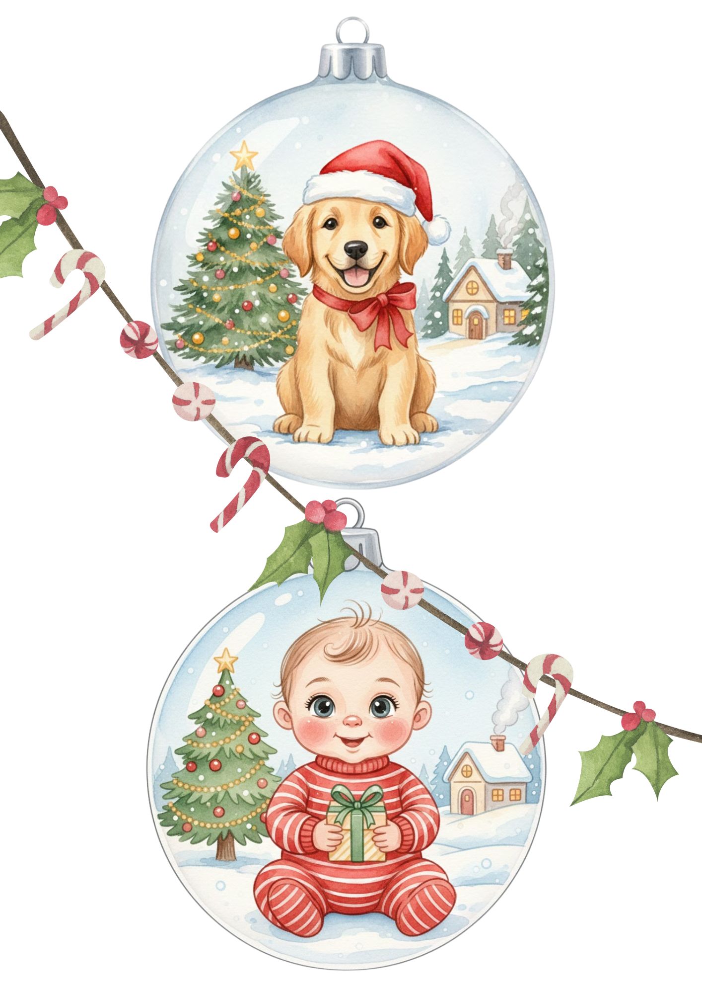 - Vianočná rodina: 12 vianočných gúľ s obrázkami členov rodiny.