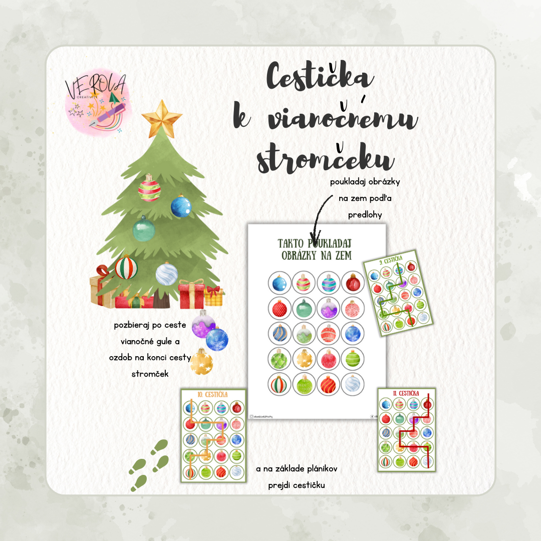 🌲 Cestičky k vianočnému stromčeku – pohybová hra podľa mapky - pozor s kruhmi si možno zahrať veľké pexeso ak ich vytlačíte dva krát