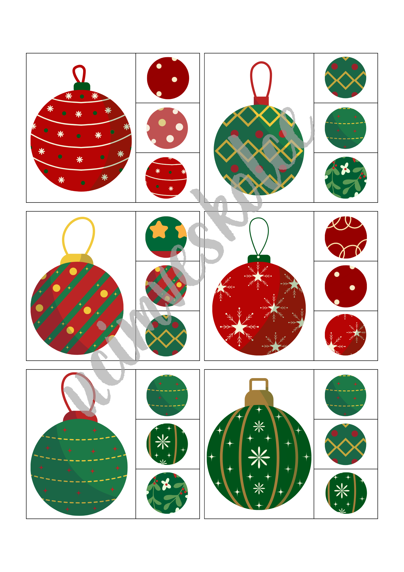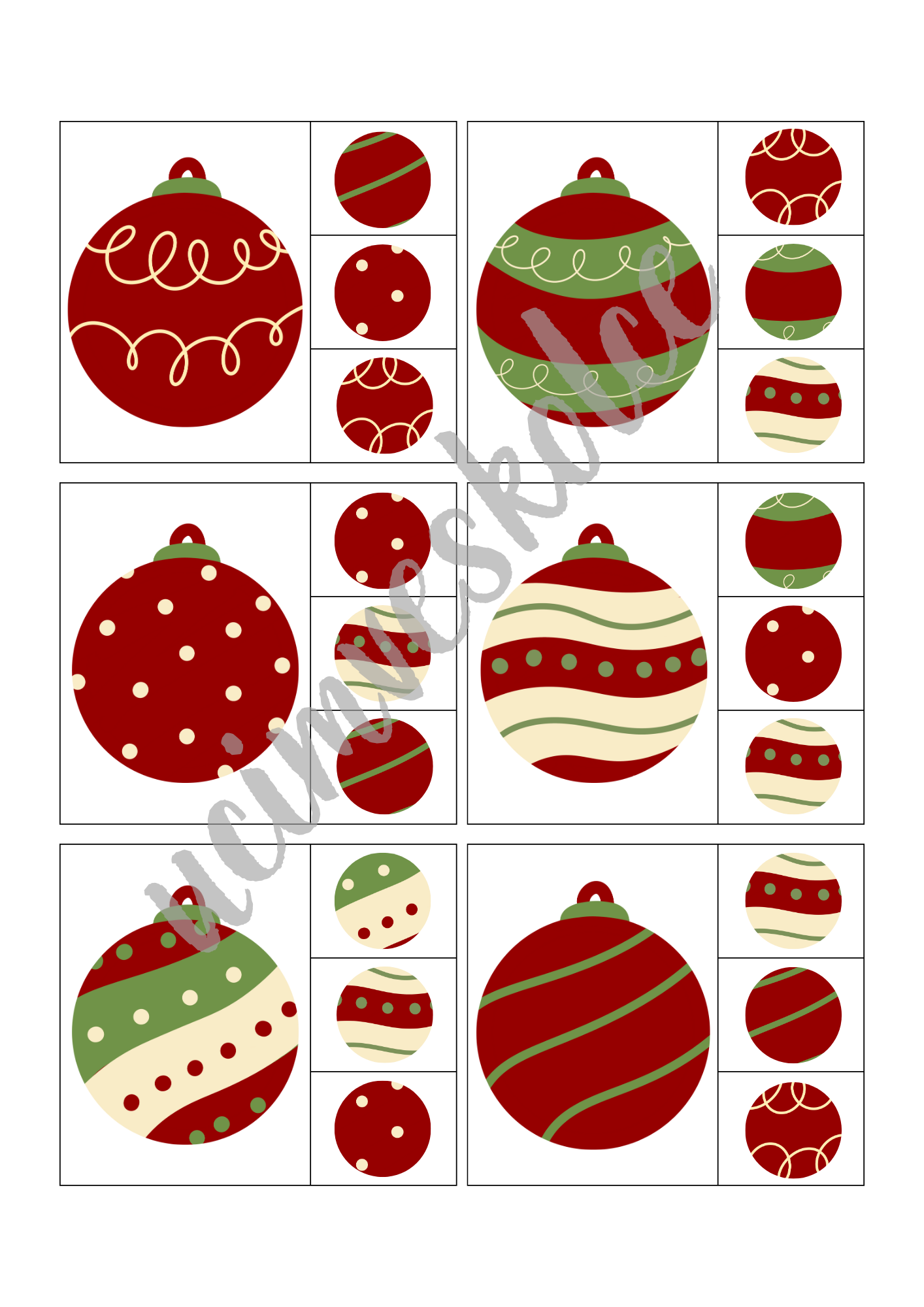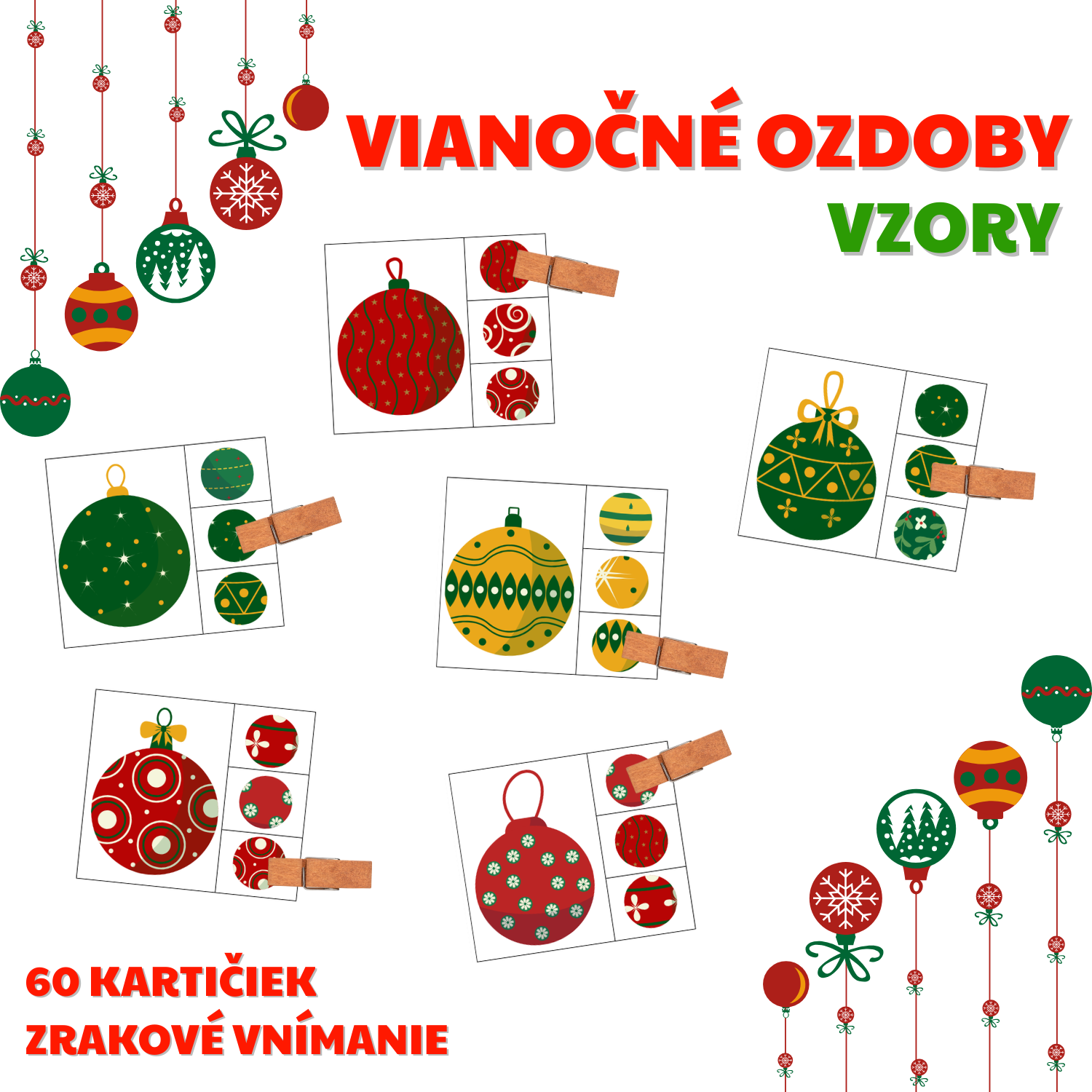 V súbore nájdete 60 kartičiek s rôznymi vianočnými ozdobami vhodných na štipcovanie.