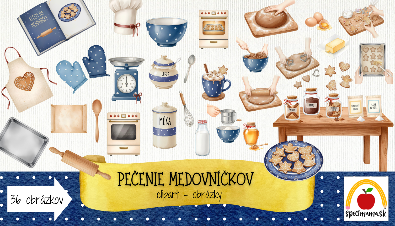 Vneste do svojich projektov vôňu a teplo Vianoc s týmto rozkošným clipart setom „Pečenie medovníkov“!