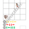 Obsahuje 20 veľkých kariet (A4 listov) - na každej karte je zobrazená tabuľka, v ktorej je jedno políčko s obrázkom vtáka a jedno políčko s obrázkom krmítka a malé kartičky (s číslami a farebnými bodkami), ktoré môžete / nemusíte využiť.