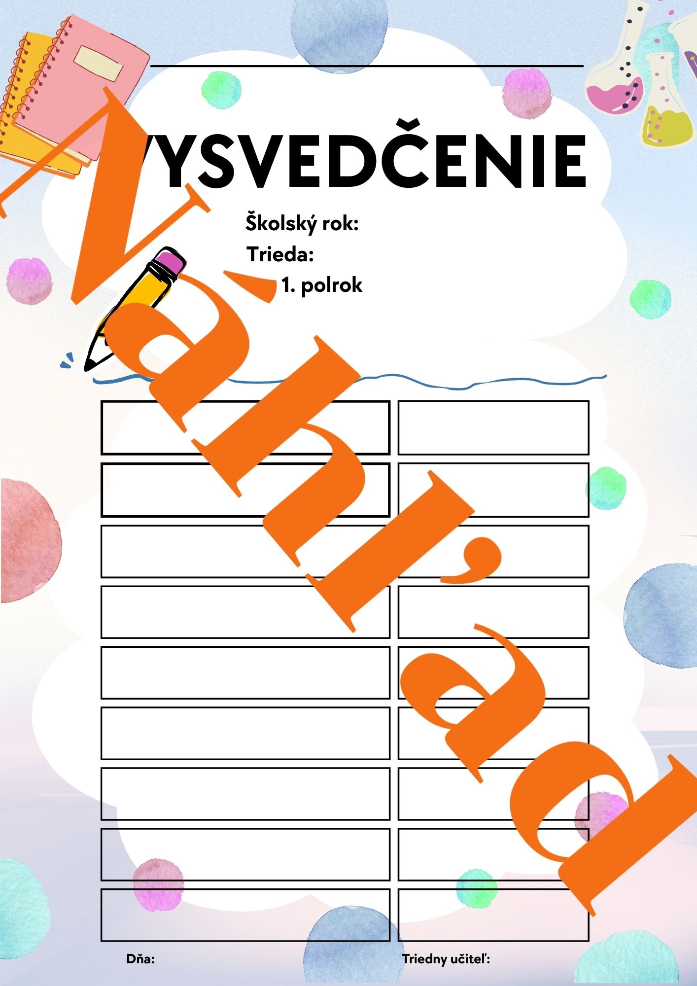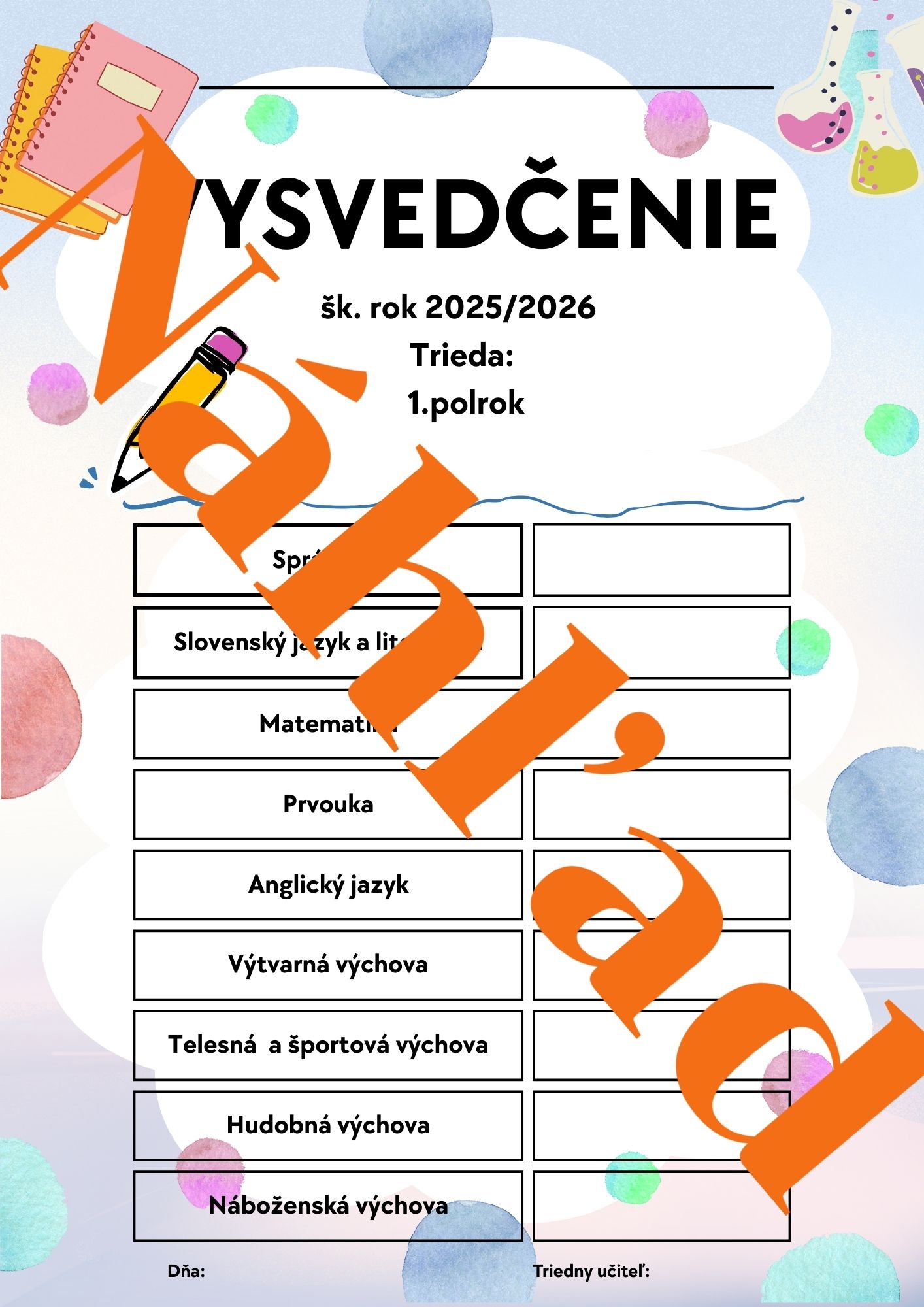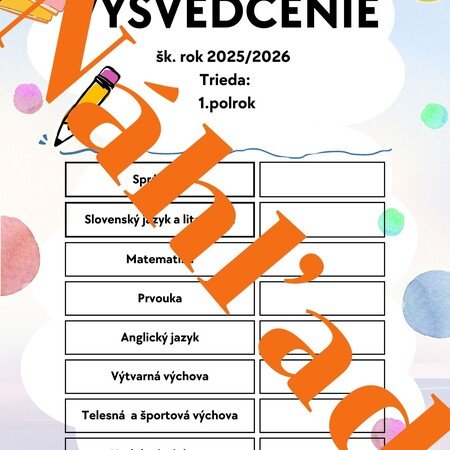 • Vysvedčenie za 1. polrok – vo verzii s prázdnymi kolónkami aj vo vyplnenej verzii