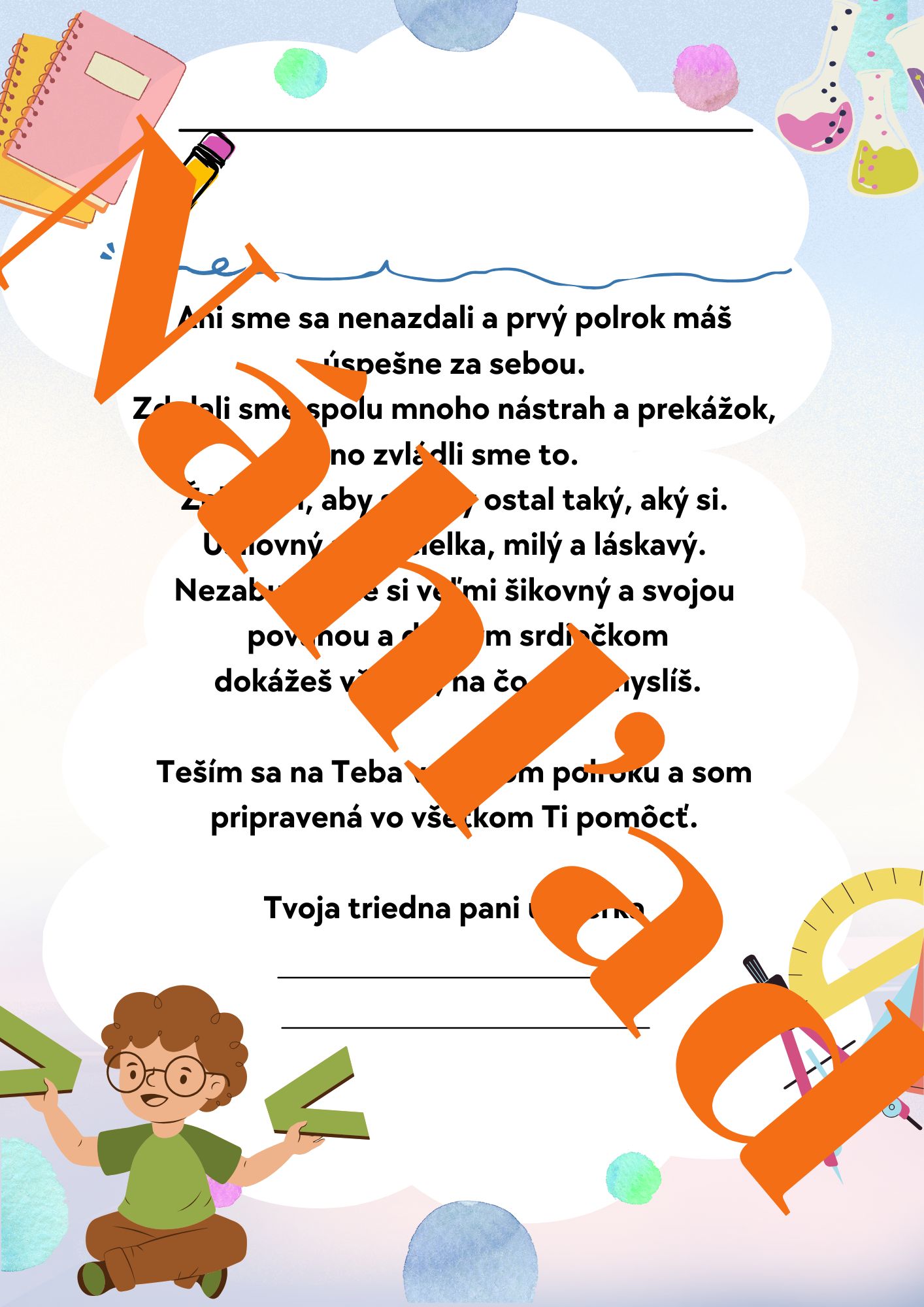 • Povzbudzujúci list pre žiaka
